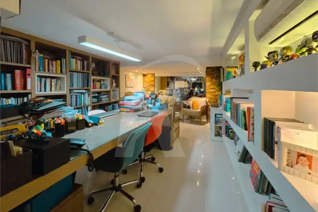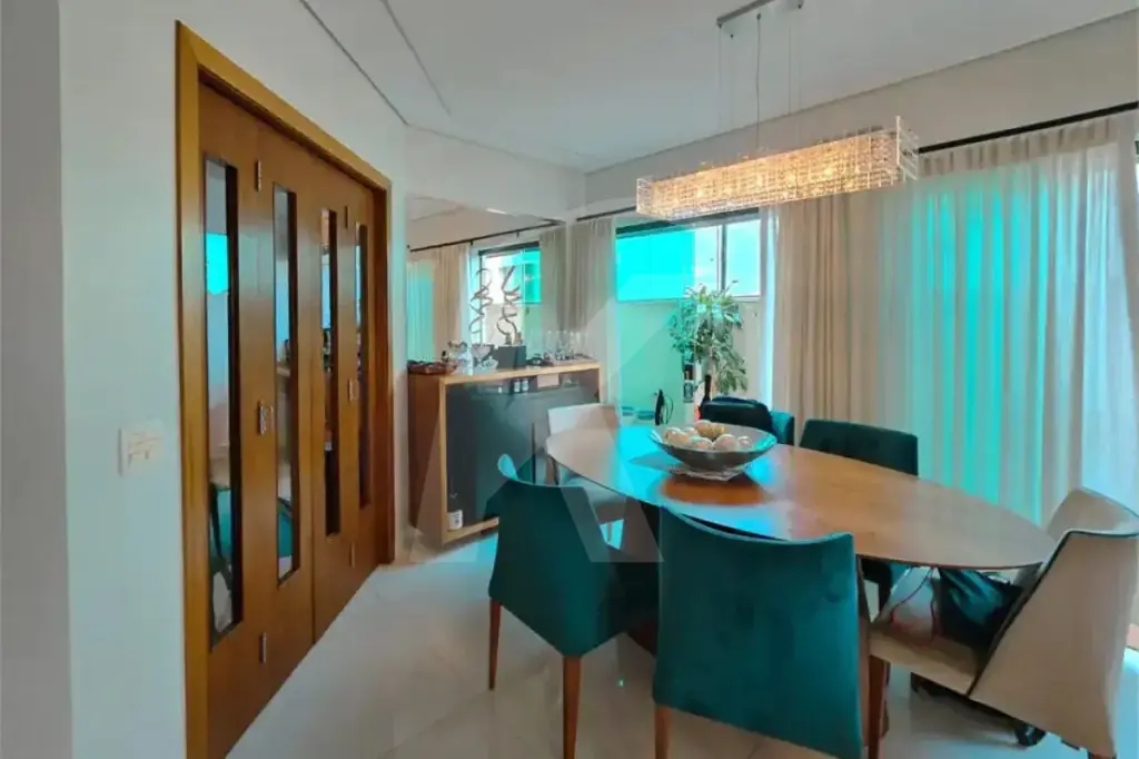 Na área social, os ambientes são integrados e bem distribuídos, com sala de estar, jantar e TV, proporcionando um espaço agradável para convivência e recepção. Há também um escritório reservado, ideal para home office, e lavabo de apoio.