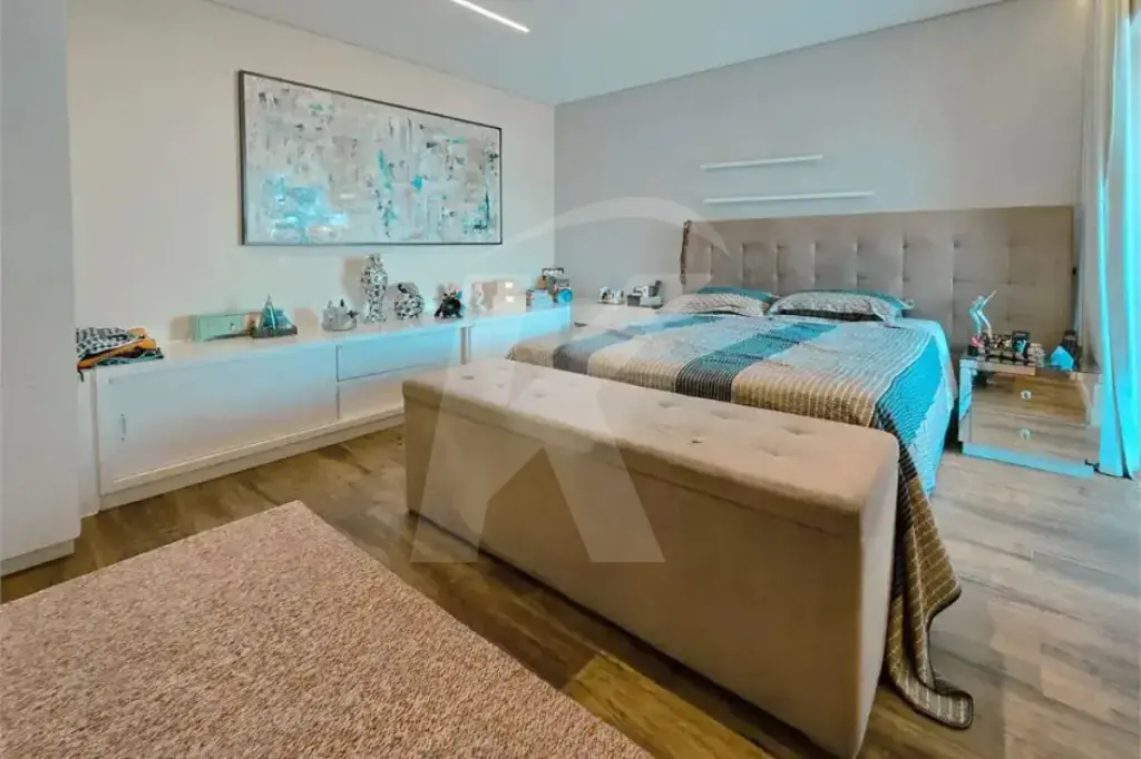 A parte íntima dispõe de três dormitórios bem iluminados, incluindo a suíte principal com closet. Os banheiros atendem de forma prática tanto a área social quanto os quartos.