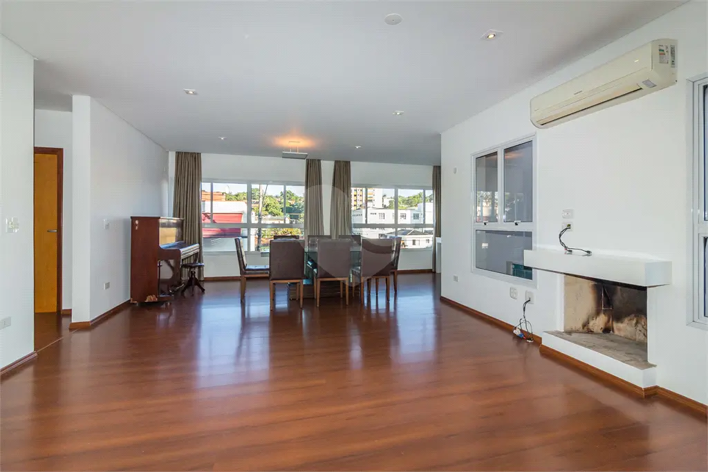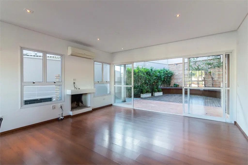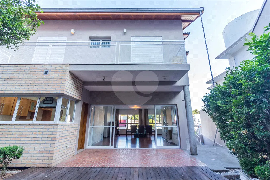 Excelente sobrado com arquitetura moderna, bem conservado, pronto para morar. Recebe ótima incidência solar em todos os ambientes. Situado em bairro residencial e muito tranquilo. Cerca elétrica, interfone e portão automático.. Apresenta sala em conceito aberto, envidraçada, com lareira natural, ar condicionado e integrada a cozinha e a área gourmet. Possui ampla cozinha com despensa e armários de primeira linha, bem iluminada, piso porcelanato, coifa inox e com acesso ao jardim e a área gourmet. Conta com quatro suítes, todas com sacada e guarda corpo, bem iluminadas e banheiros modernos e com ganiete e box. A suíte máster conta ainda com amplo closet. Todo o piso superior é revestido com piso laminado em perfeito estado de conservação. Área de serviço bem arejada e iluminada, garagem com banheiro, despensa e vaga para seis carros.. - Ref.: REO835717