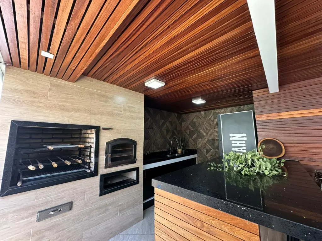 ?Área gourmet ampla com churrasqueira e lavabo;