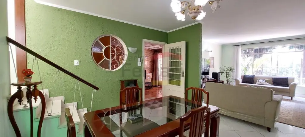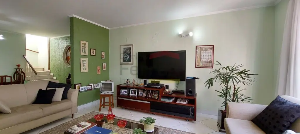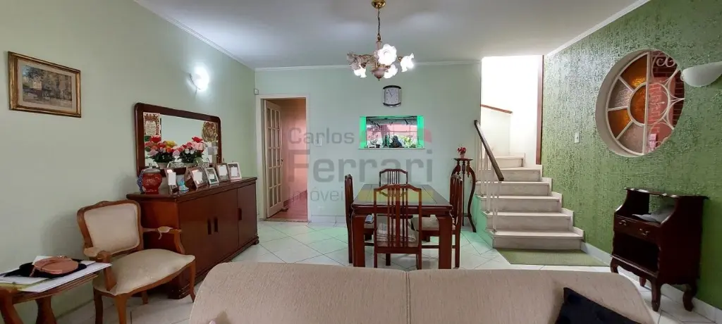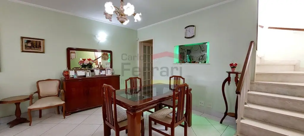 O sobrado é distribuído em, 3 dormitórios, sendo uma suíte, sala de visita e sala de jantar, lavabo grande, cozinha com armários e despensa, quintal grande com lavanderia coberta e edícula, corredor lateral que esta sendo utilizado com 2 escritórios e vaga para colocar três carros grandes, se forem carros menores cabem até quatro .