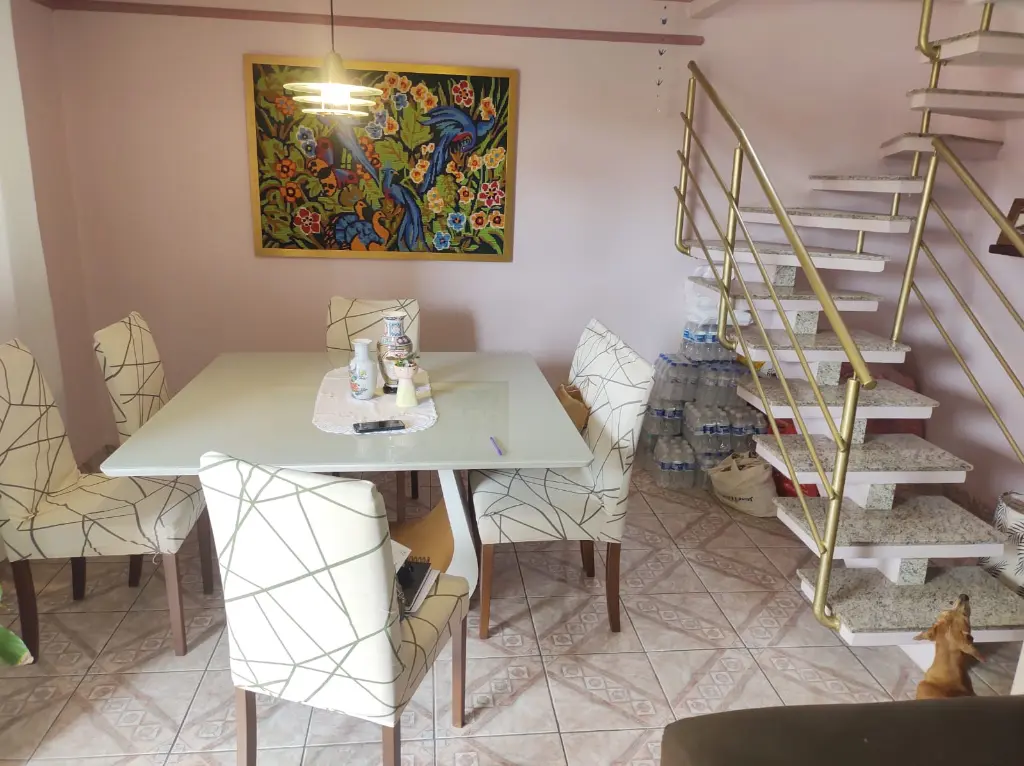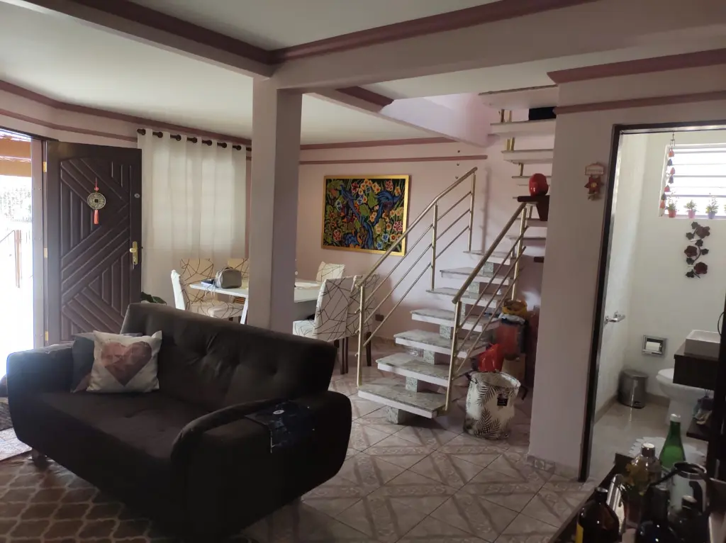 Sobrado, no Residencial Santa Terezinha, 4 quartos, sendo 2 suítes, 1 lavabo, escritório, sala ampla para 2 ambiente, piso frio, copa, cozinha com armários planejados, lavanderia, tudo em piso frio, 2 vagas de garagem, e pequeno jardim, corredor lateral, nos fundos, na parte superior, ampla área gourmet, com churrasqueira e espaço para piscina. Ótima localização próximo ao Shopping Santana Park, bairro com infra-estrutura em comércio, serviços e lazer