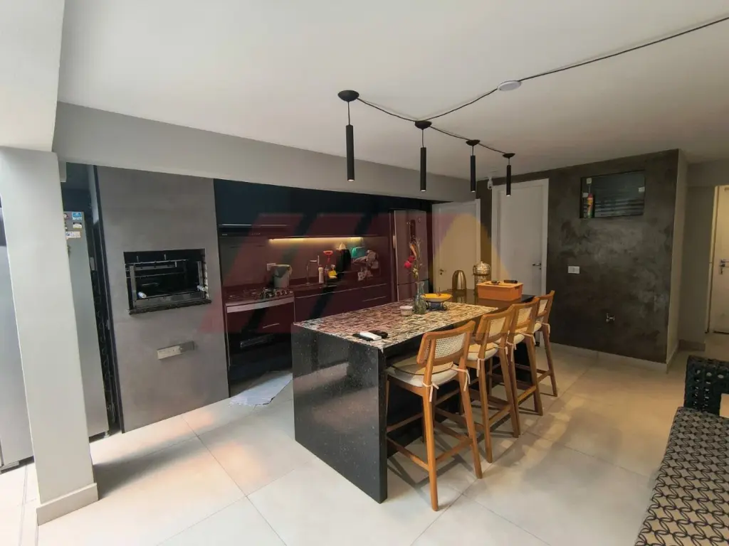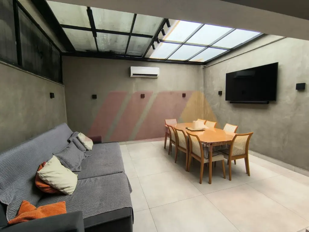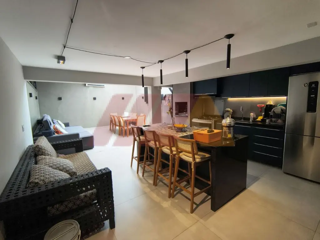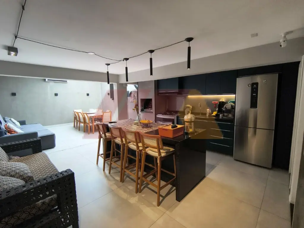Para momentos de lazer, o sobrado oferece uma completa área gourmet com churrasqueira, cooktop, ilha, ideal para reunir família e amigos com conforto em qualquer estação.