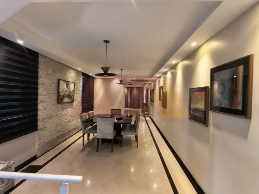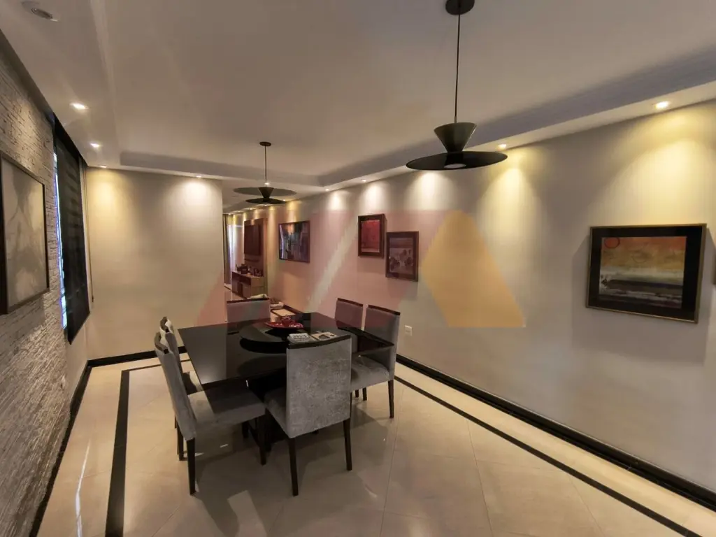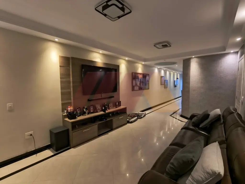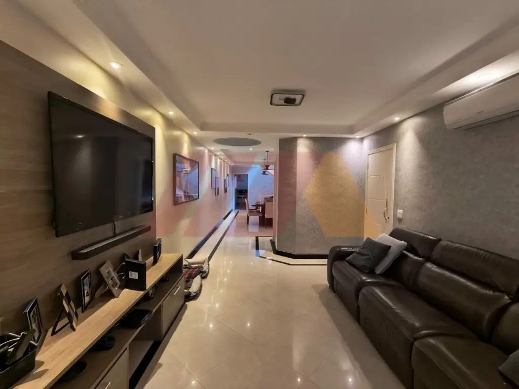A área social é ampla e integrada, perfeita para receber, com salas de estar, jantar e TV, lavabo e um elegante projeto de iluminação. A cozinha segue o mesmo padrão moderno e conectada à lavanderia.