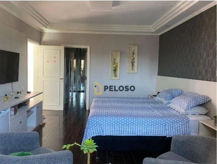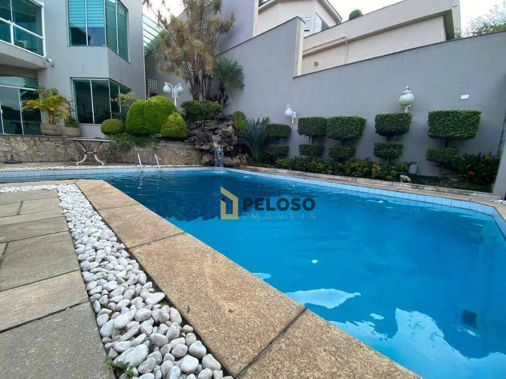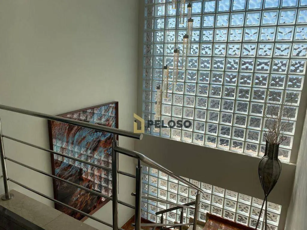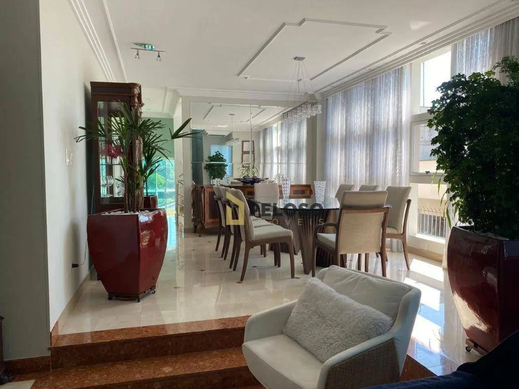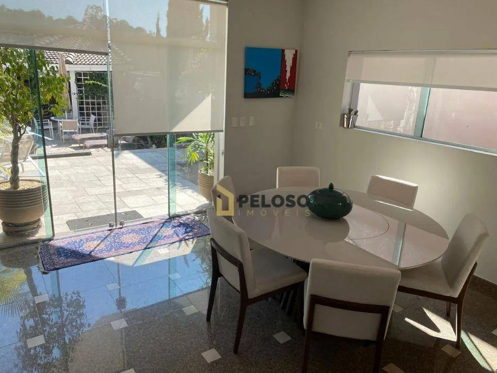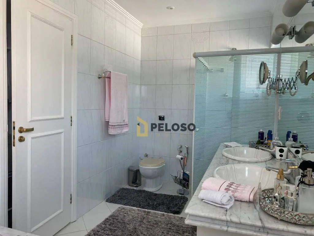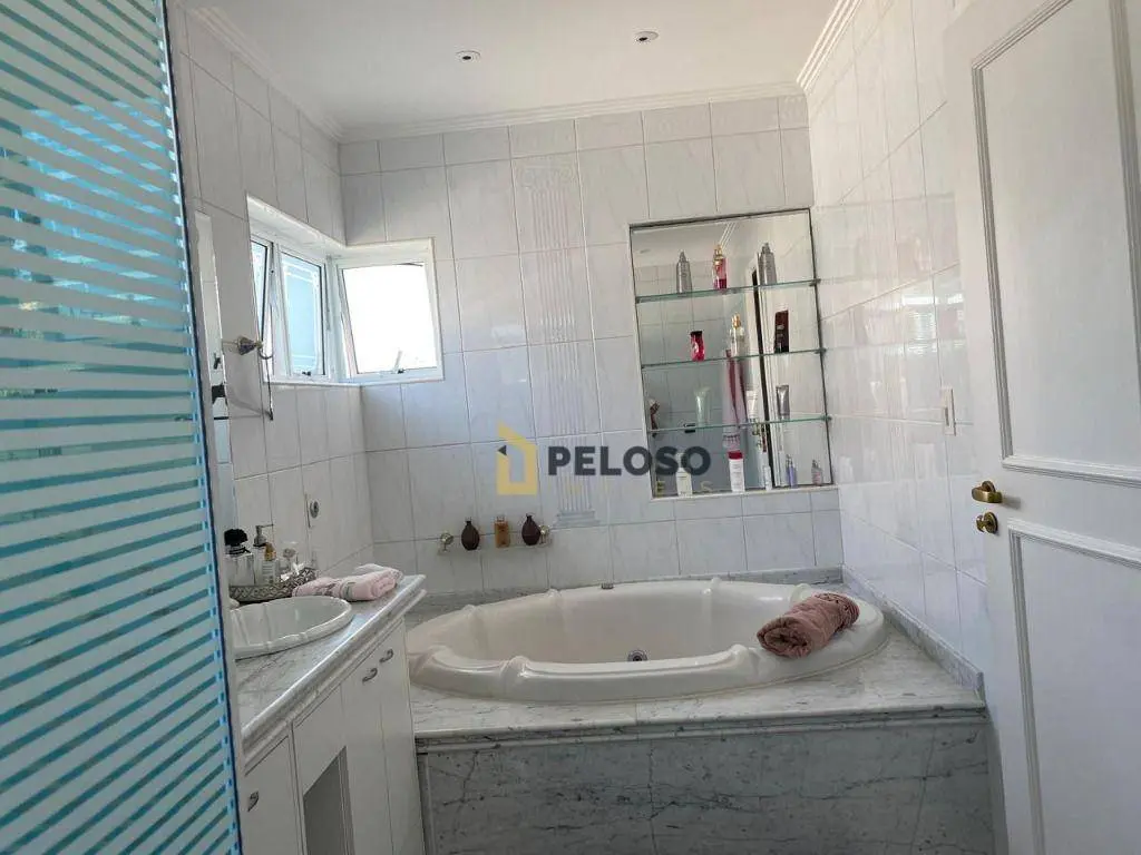 4 suítes, 1 suíte master com closet e jacuzzi; living para 3 ambientes: 2 salas de TV, jantar e almoço; lavabo, lareira, cozinha planejada, área de serviço.