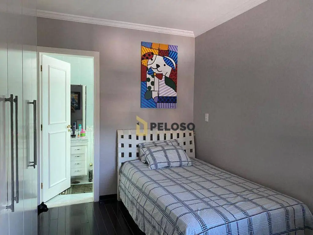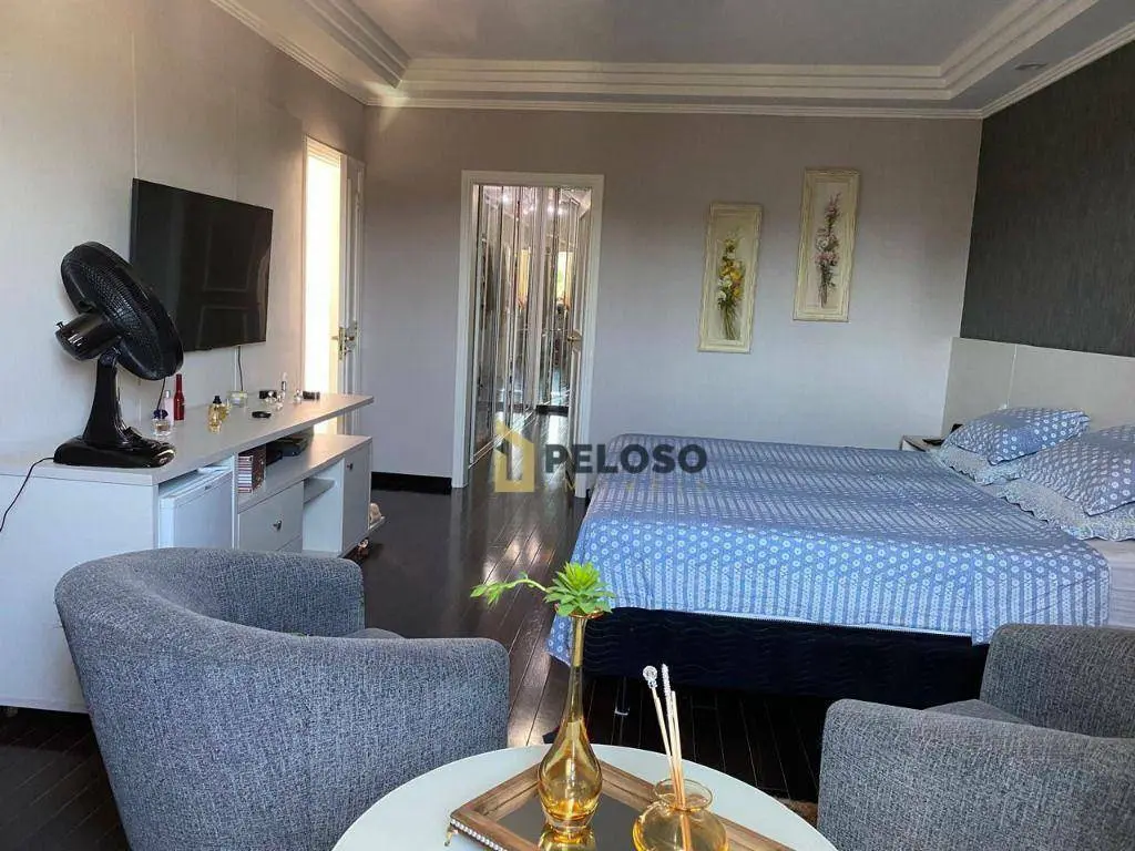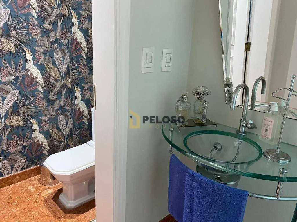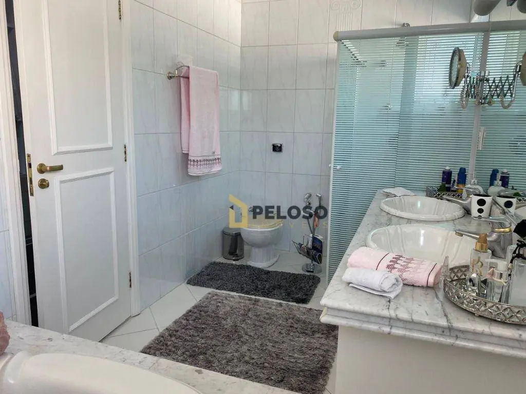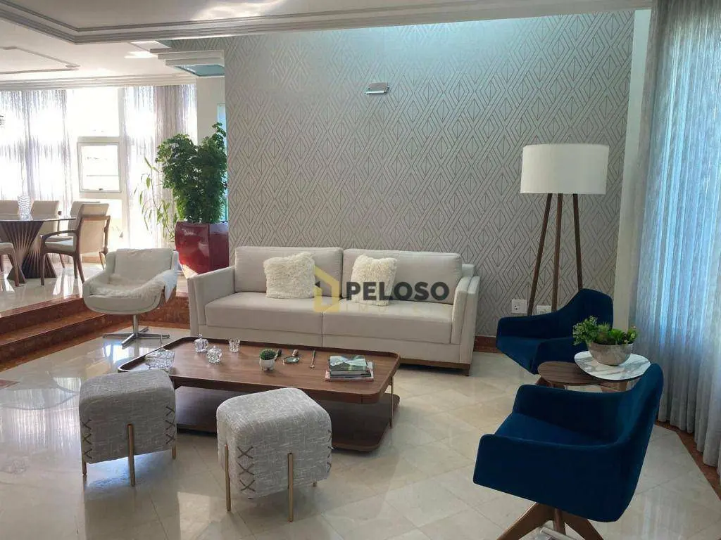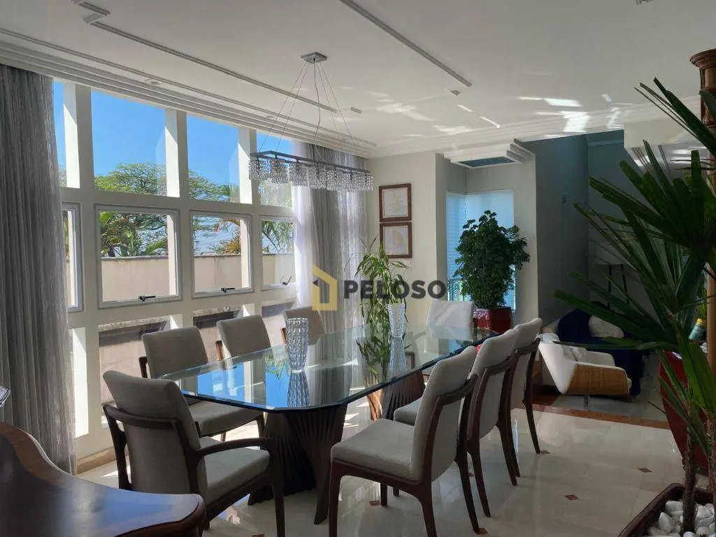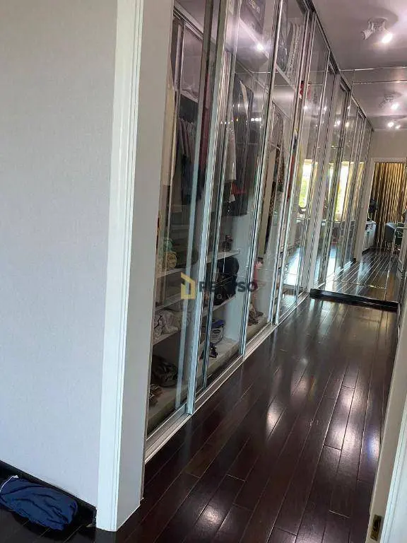 4 suítes, 1 suíte master com closet e jacuzzi; living para 3 ambientes: 2 salas de TV, jantar e almoço; lavabo, lareira, cozinha planejada, área de serviço.