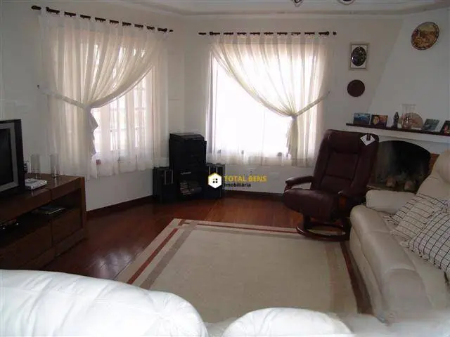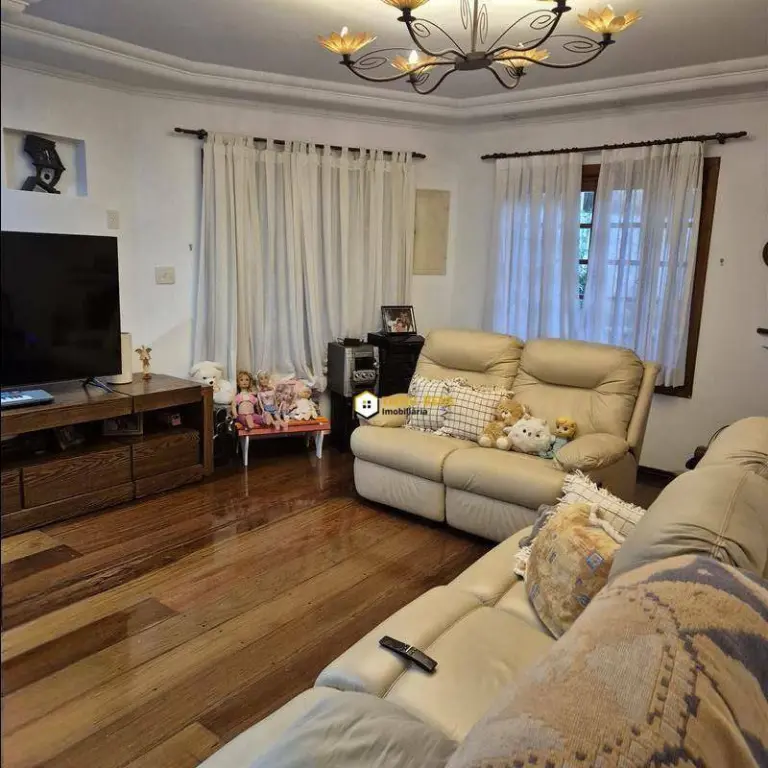 Internamente, o imóvel impressiona pelos acabamentos e pela distribuição inteligente dos espaços. A sala de estar possui detalhes em tijolinho à vista, adega e janelas estilo bay Windows, garantindo charme e iluminação natural. A sala de jantar conta com pé-direito duplo, enquanto a sala de TV, ampla e confortável, possui lareira e vista para a área externa.