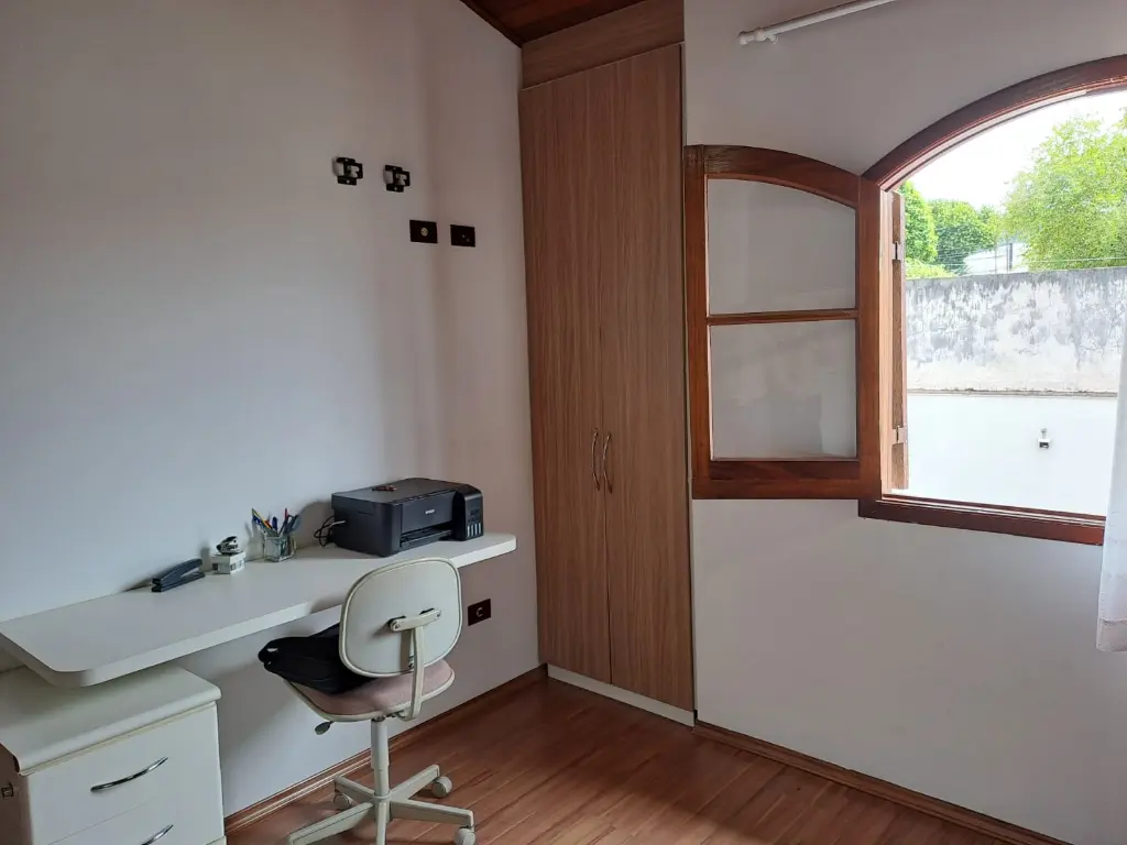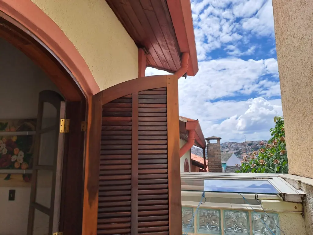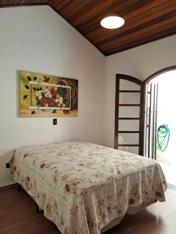 Forro de madeira nos quartos, trazendo um toque acolhedor.