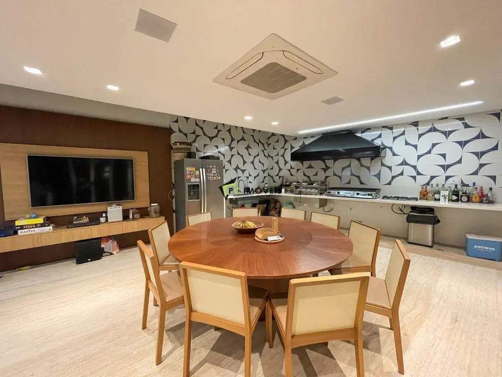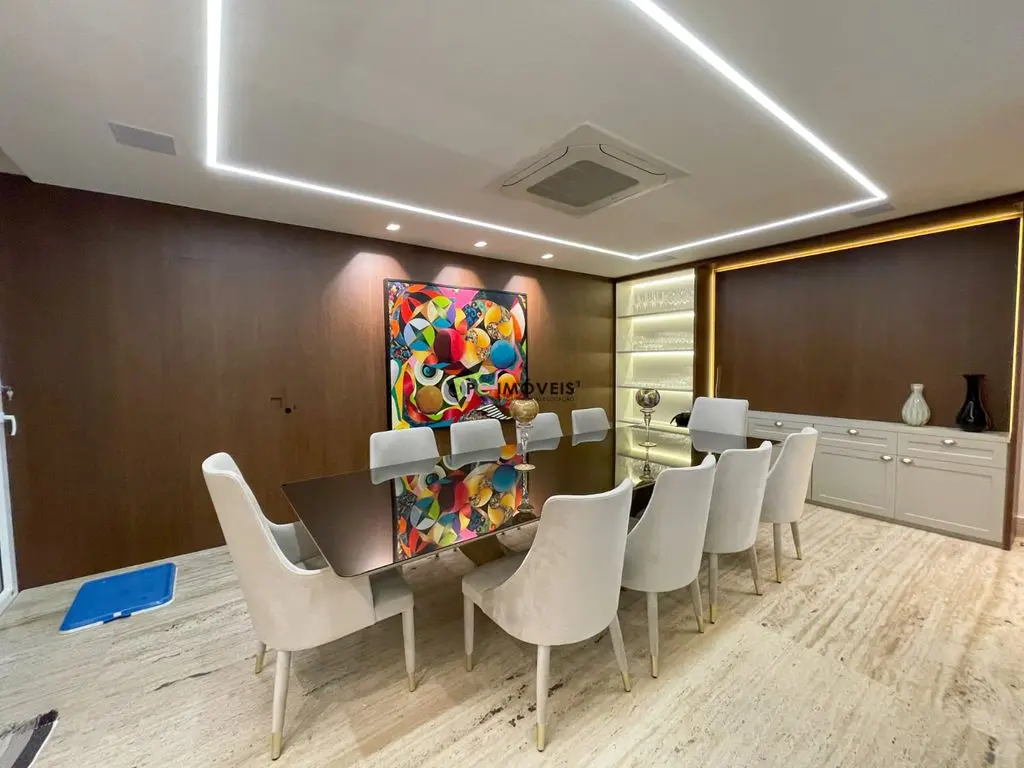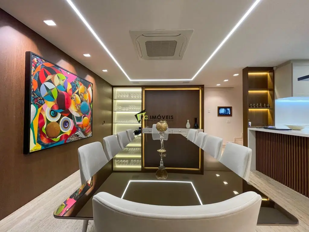 Área social integrada com piso em mármore travertino, som ambiente e adega climatizada. Cozinha gourmet equipada com Dekton, eletros premium e excelente funcionalidade. Todo o imóvel conta com ar-condicionado quente e frio, além de janelas com tratamento antirruído, garantindo máximo conforto acústico e térmico.