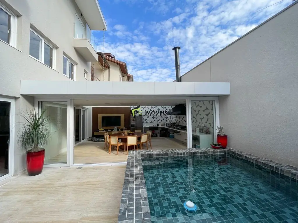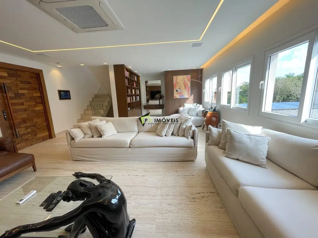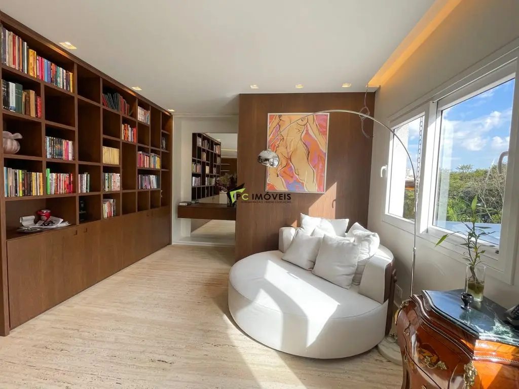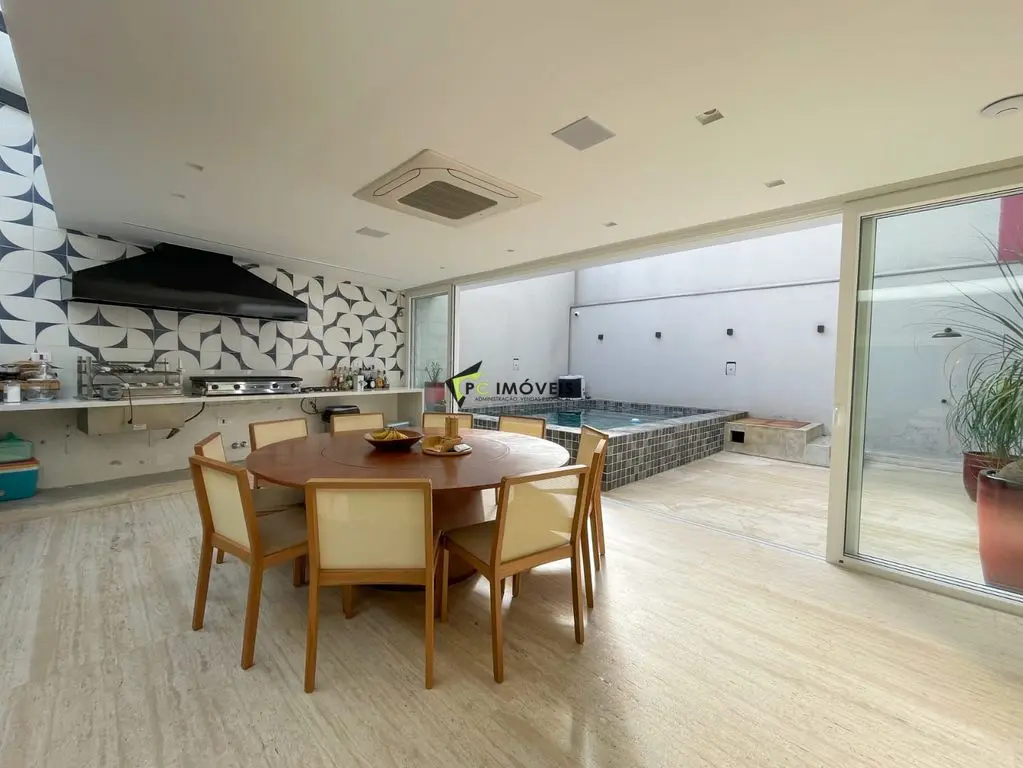 Área de lazer completa com espaço gourmet, piscina aquecida com hidromassagem e som ambiente. Conta ainda com estúdio/escritório de 40 m² e garagem para até 4 veículos.