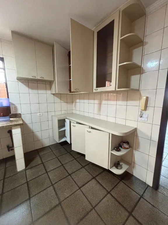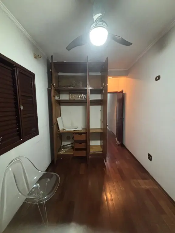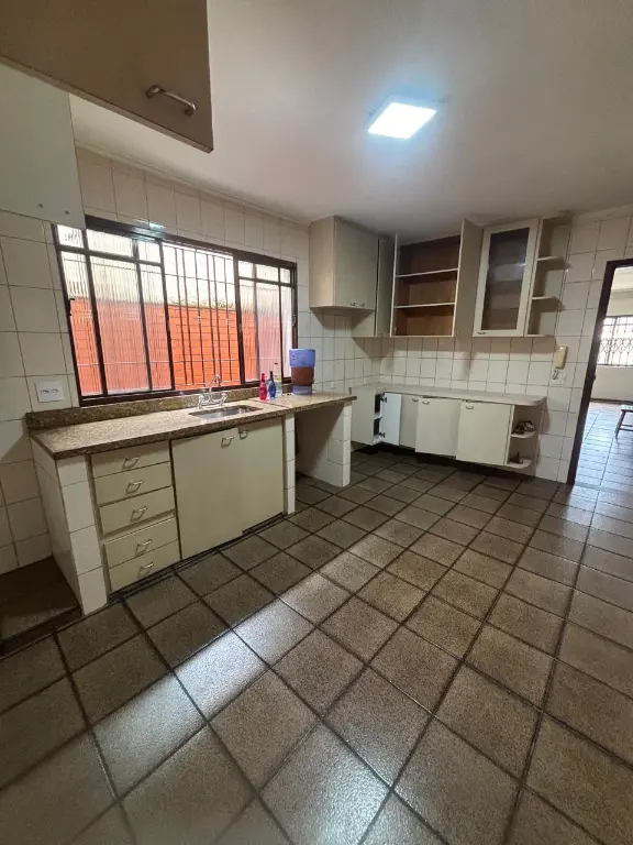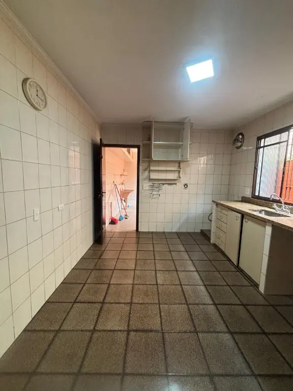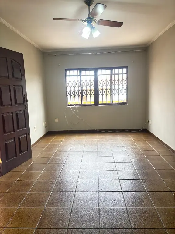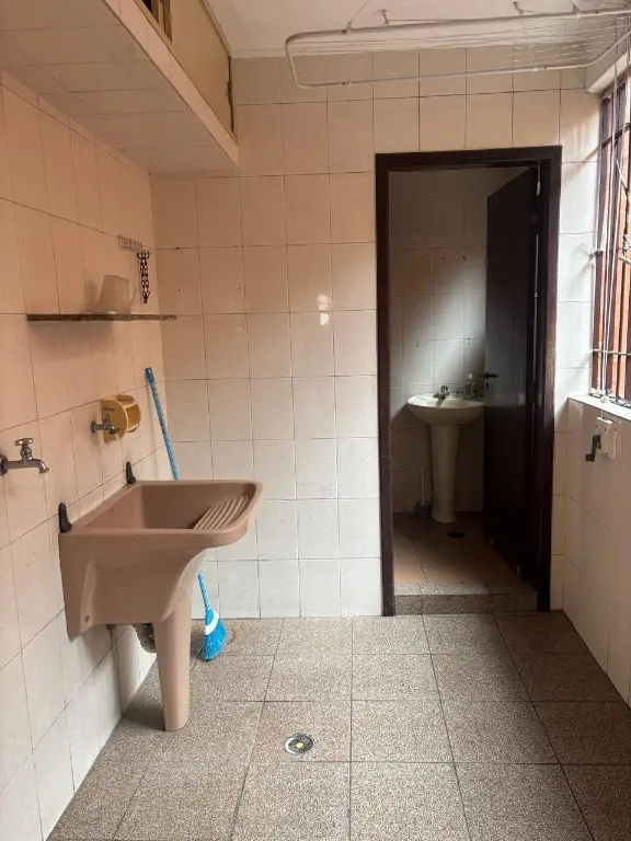 Parte térrea: sala para 2 ambientes, cozinha planejada, área de serviço fechada com despensa, banheiro, quintal, churrasqueira, pequeno canil e varanda.