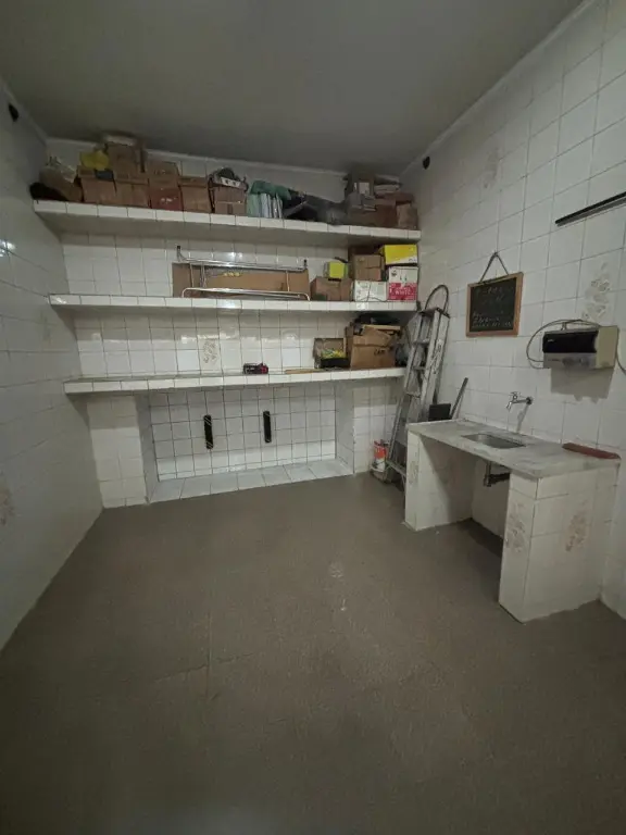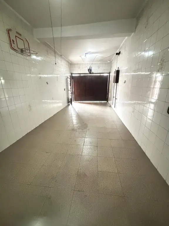 Garagem para 3 autos, com prateleiras.