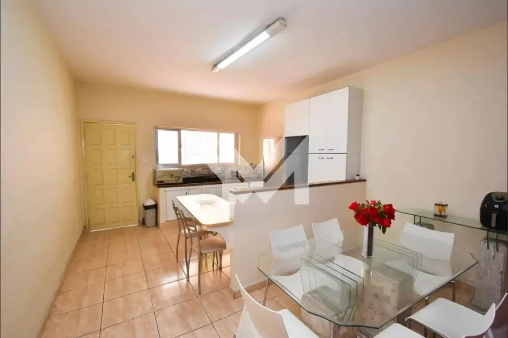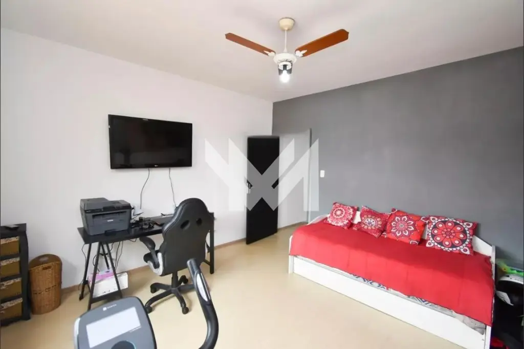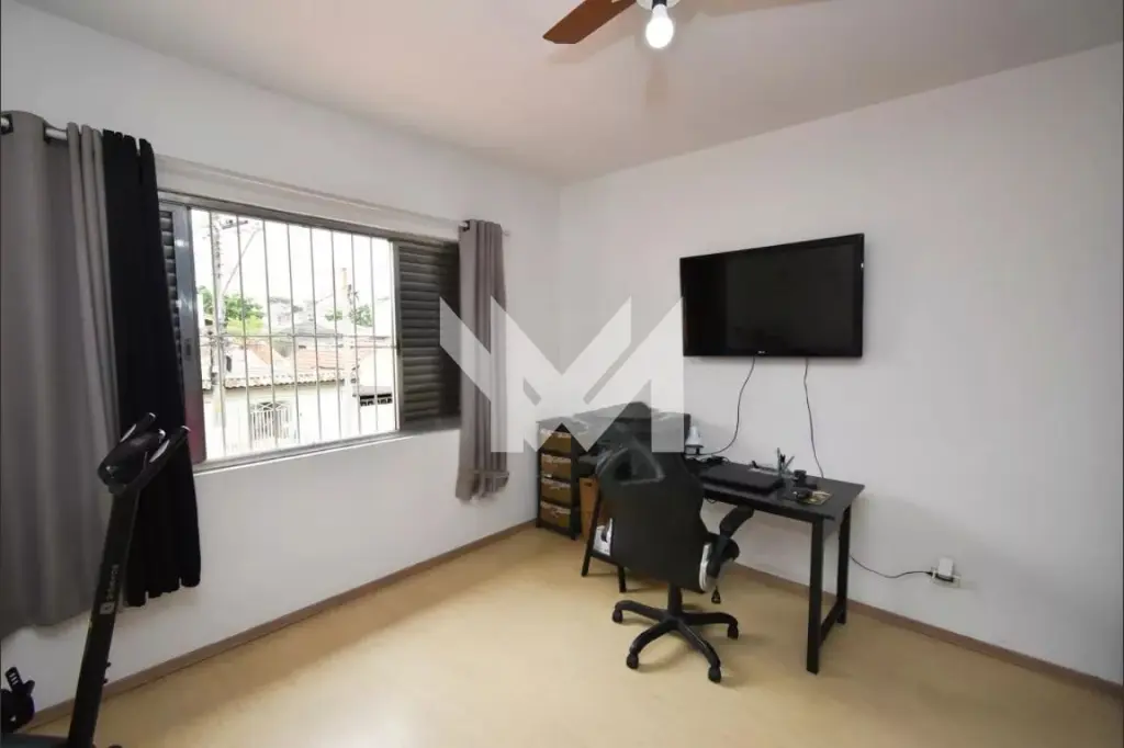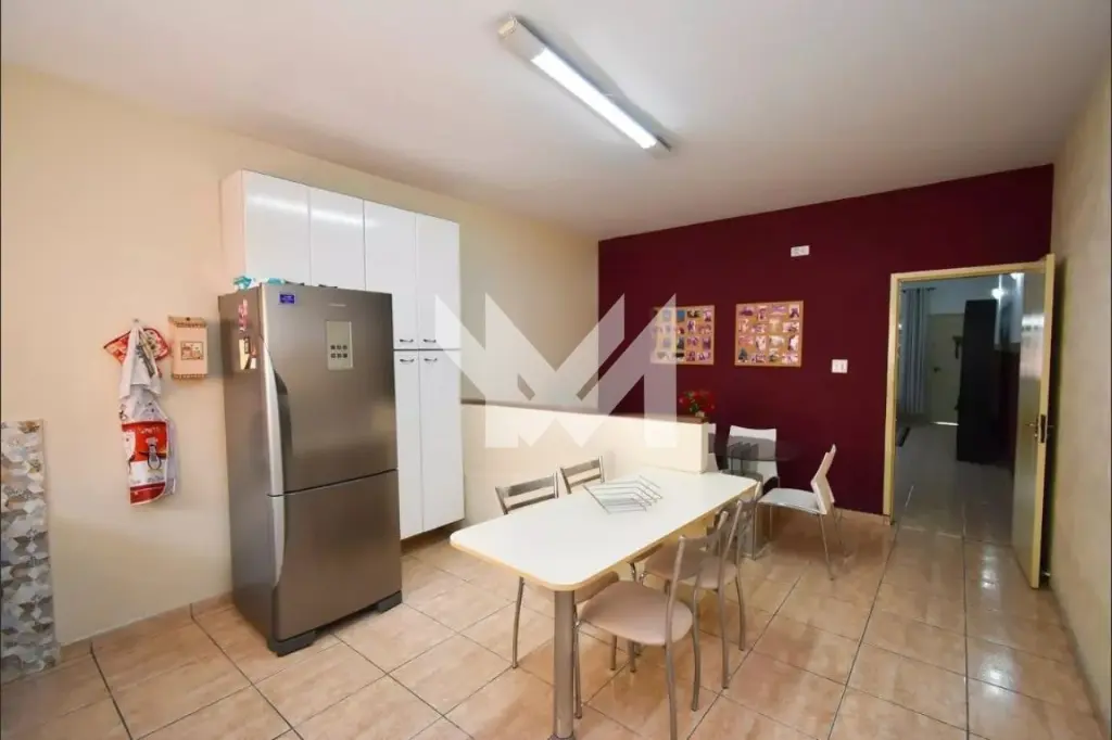 Sobrado com 195m², divididos em 3 quartos sendo uma suíte, sala para 22 ambientes, cozinha, 4 banheiros, área de serviço, quintal, edícula, e quintal com 1 depósito.