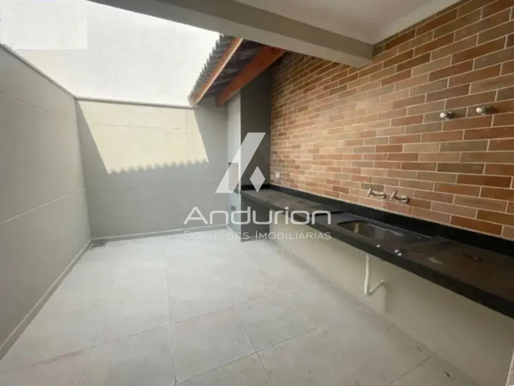 Sala ampla com piso porcelanato, cozinha com boa incidência de luz natural, lavabo, escada em granito, 3 ótimos dormitórios com piso laminado, 1 suíte com sacada, banheiros modernos, quintal com churrasqueira e 2 vagas de garagem.
