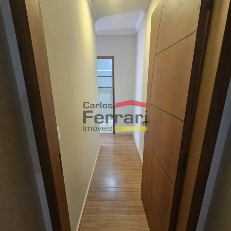 O sobrado tem 3 ótimas suítes, com armários planejados e piso laminado de madeira, salas de estar e de jantar com piso em porcelanato, cozinha ampla com ilha e armários planejados, e piso em porcelanato, área de serviços, lavabo, churrasqueira, varanda, 2 vagas de garagem.