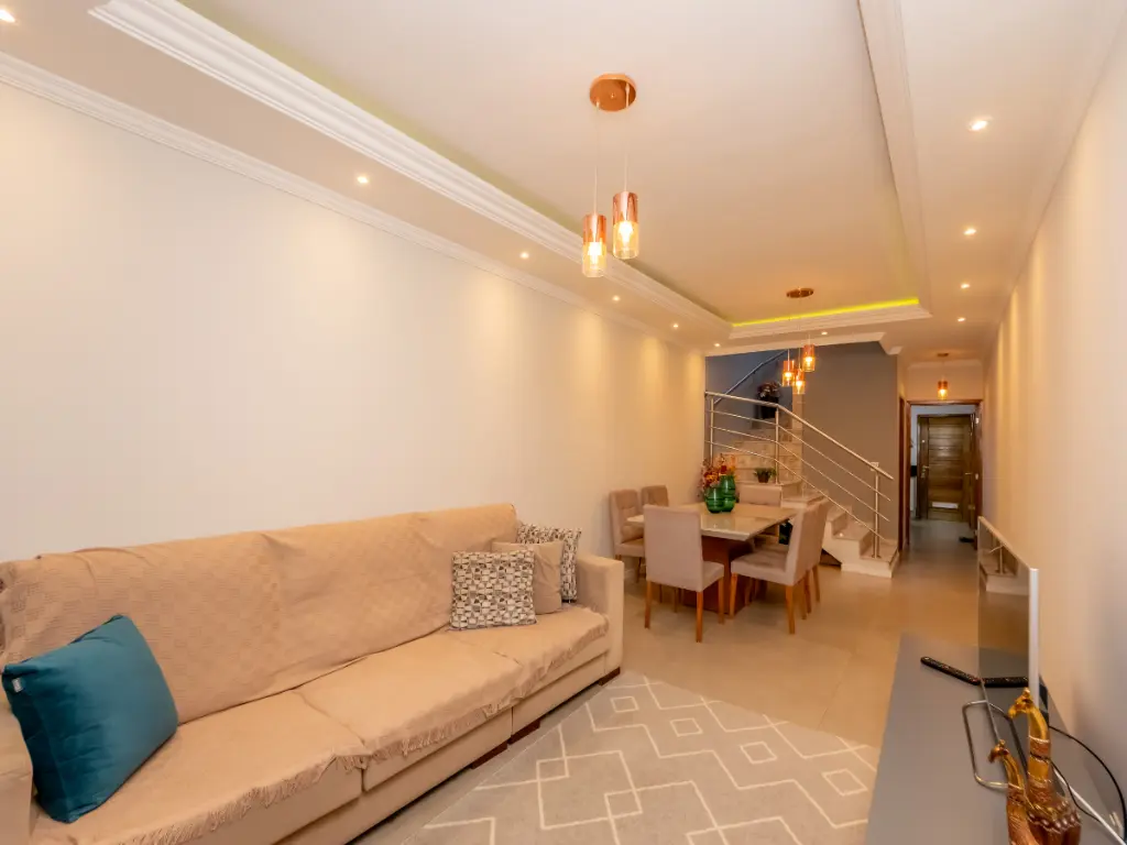 Com 108,96 metros quadrados de área privativa, a casa tem três amplos dormitórios e três banheiros bem distribuídos, além de um lavabo. A cozinha é equipada com armários planejados, garantindo funcionalidade e organização. A lavanderia atende todas as suas necessidades cotidianas, enquanto o ar condicionado proporciona conforto térmico em qualquer estação.