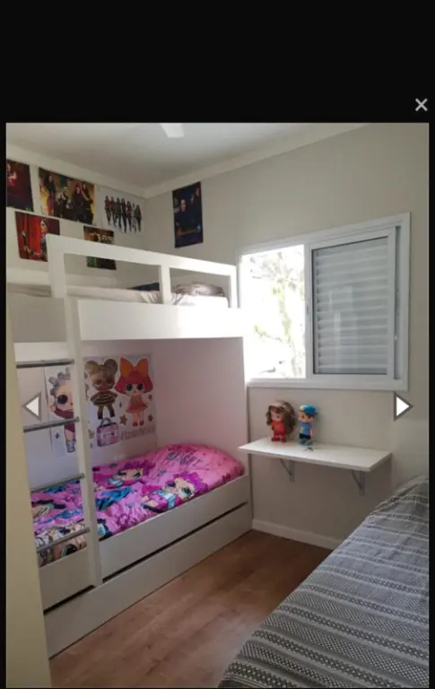 Tudo com armários embutidos, papel de parede, todo completo.