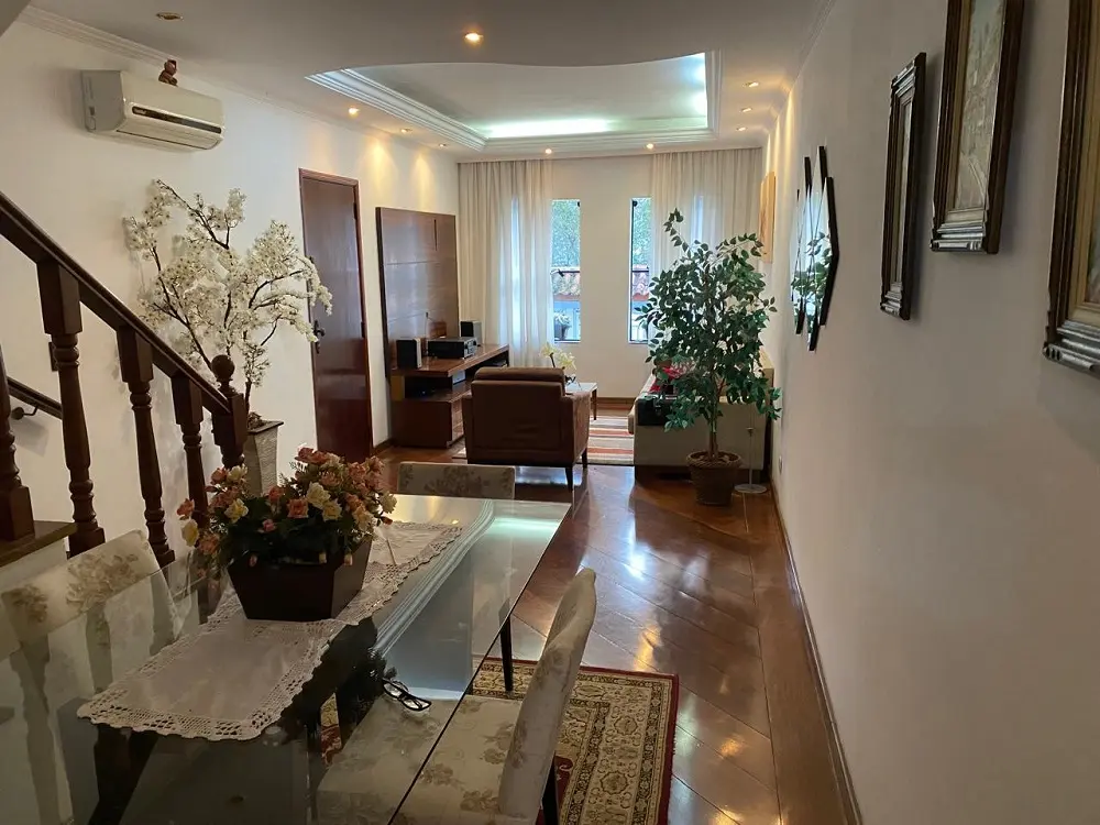 Sobrado na Vila Nova Mazzei, 3 dormitórios (1 suíte com ar condicionado e sacada) com armários embutidos, 163m² de área privativa, entrada lateral, sala para 2 ambientes com ar condicionado e sanca com iluminação embutida, piso em assoalho na sala e tacão nos dormitórios, cozinha com armários planejados, lavabo, quintal com churrasqueira, 5 vagas de garagem.