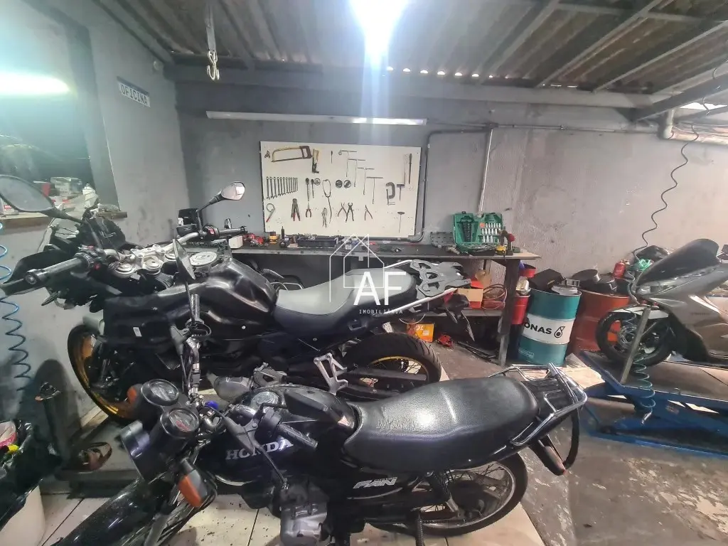 Na parte frontal do imóvel existe espaço que pode ser utilizado para atividade comercial, e na lateral e fundos há área atualmente adaptada para funcionamento de oficina.