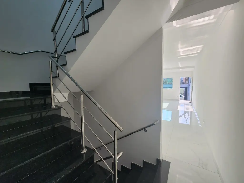 1. Sobrado conta com 230m² de área construída, com 3 dormitórios sendo 1 suíte com sacada, sala ampla e bem ventilada, cozinha com pia em mármore, 2 banheiros com pia de mármore e box de vidro(suíte e social) e 2 lavabos com pia em mármore, área de churrasqueira ampla e com copa, garagem para 4 carros.
