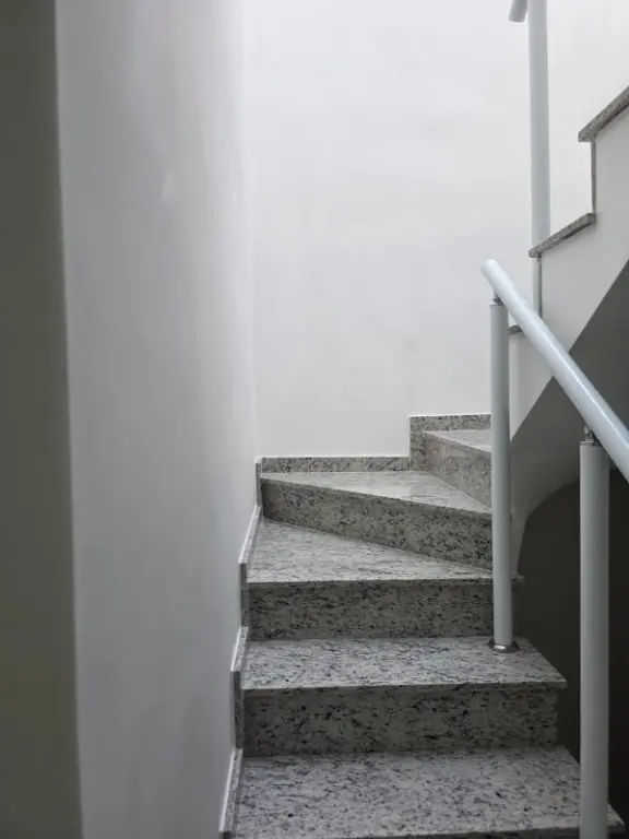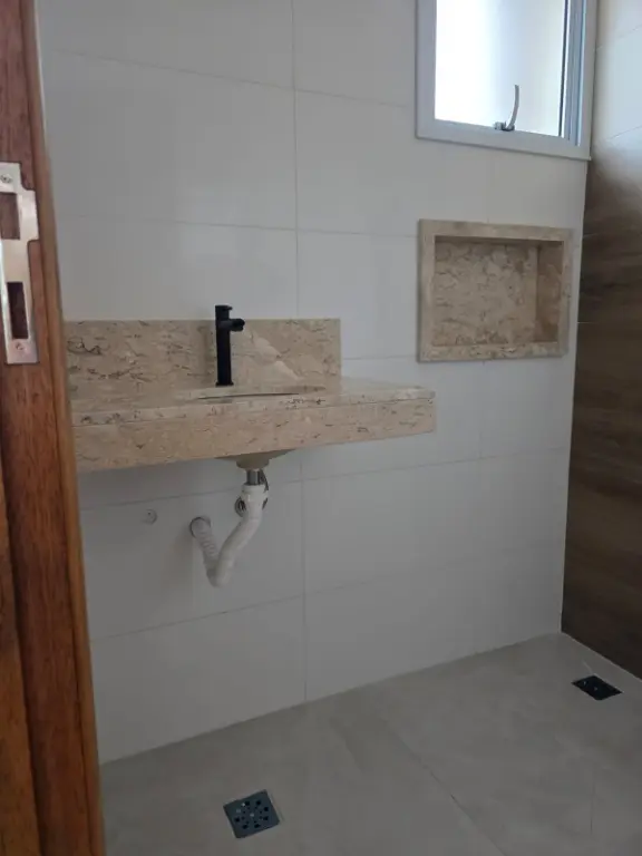 Conta com acabamento de alto padrão, incluindo piso em porcelanato, escada em granito natural, corrimão em alumínio branco e pia em granito Verde Ubatuba. Possui também portão basculante e instalação de gás de rua.