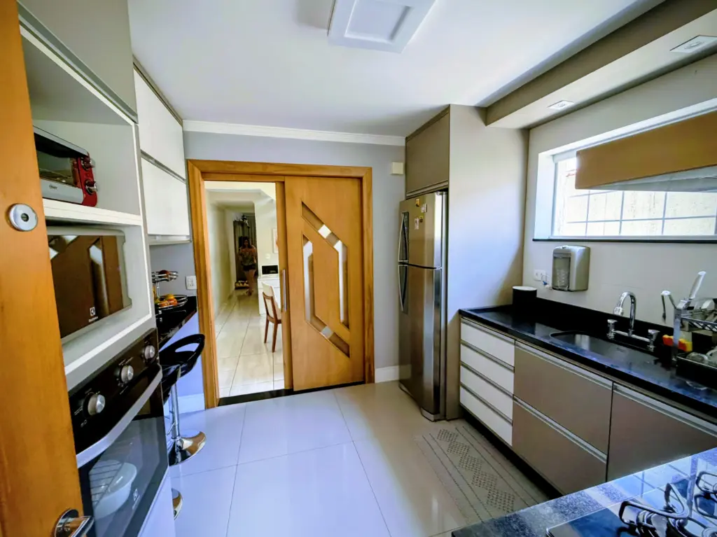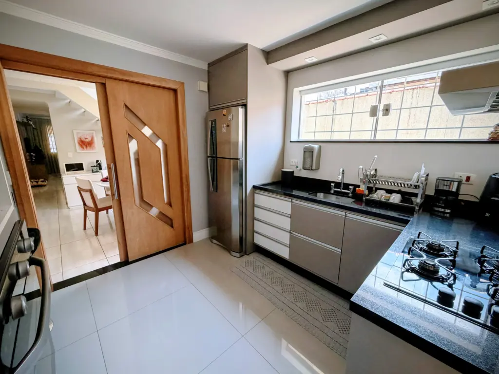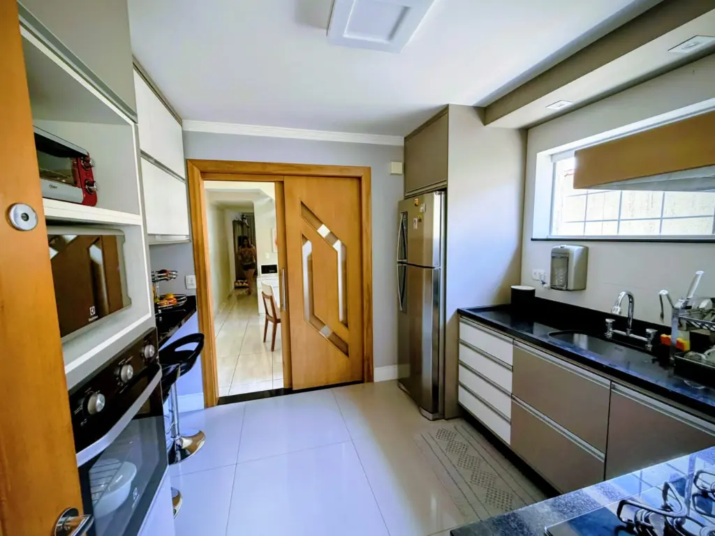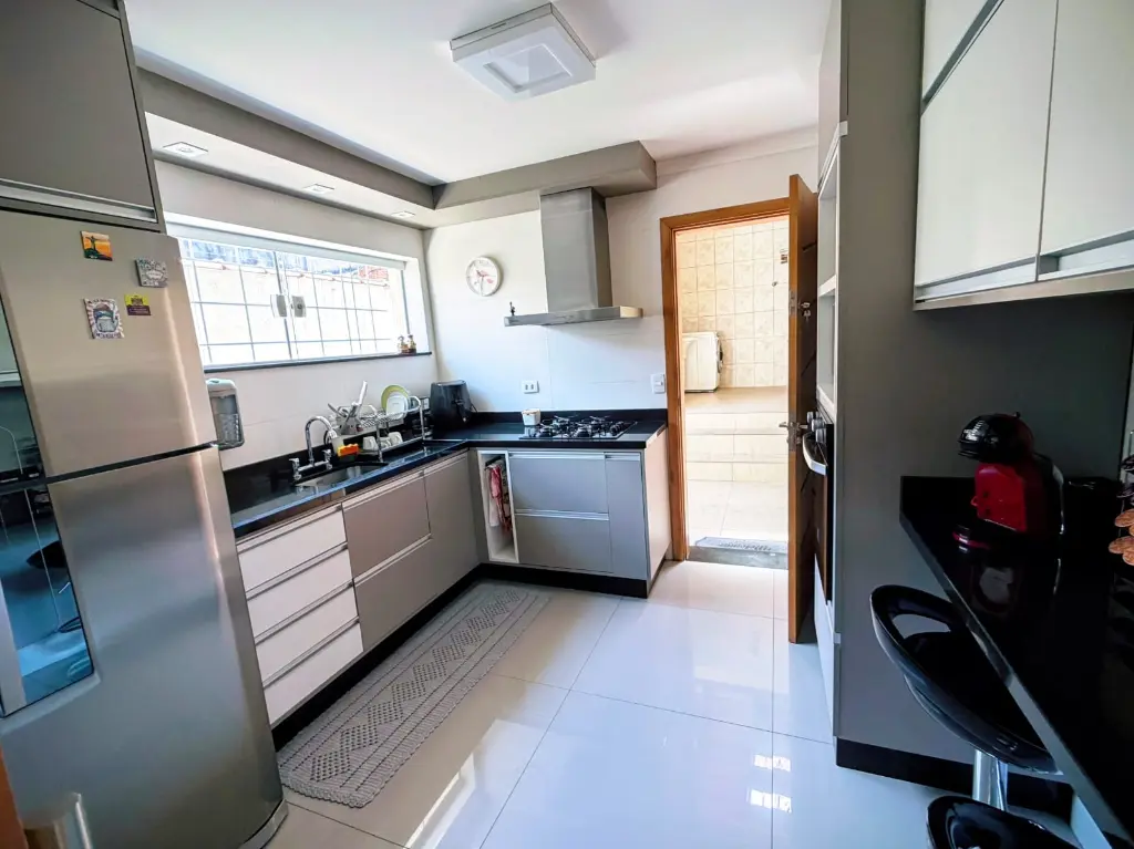 Interiores Impecáveis: Cozinha moderna e totalmente planejada, sala de jantar espaçosa e ventilada, banheiro social e uma sala ampla e arejada no piso inferior.