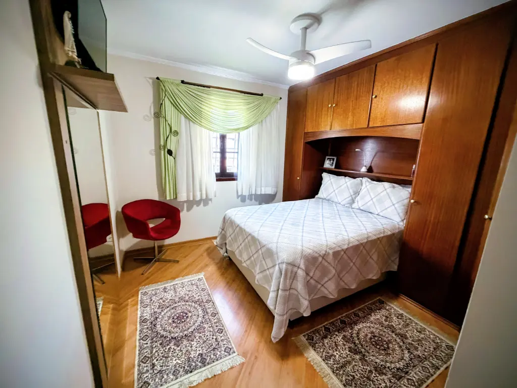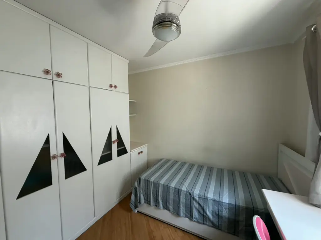 Piso Superior Confortável: Dois dormitórios amplos e totalmente planejados, com um banheiro que atende a ambos.