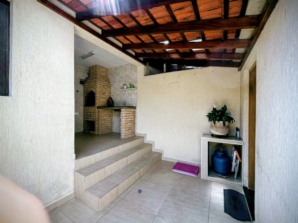 Área Externa Completa: Portão automático, garagem para dois veículos, corredor amplo, e uma edícula coberta com churrasqueira, perfeita para lazer e integração com a cozinha.