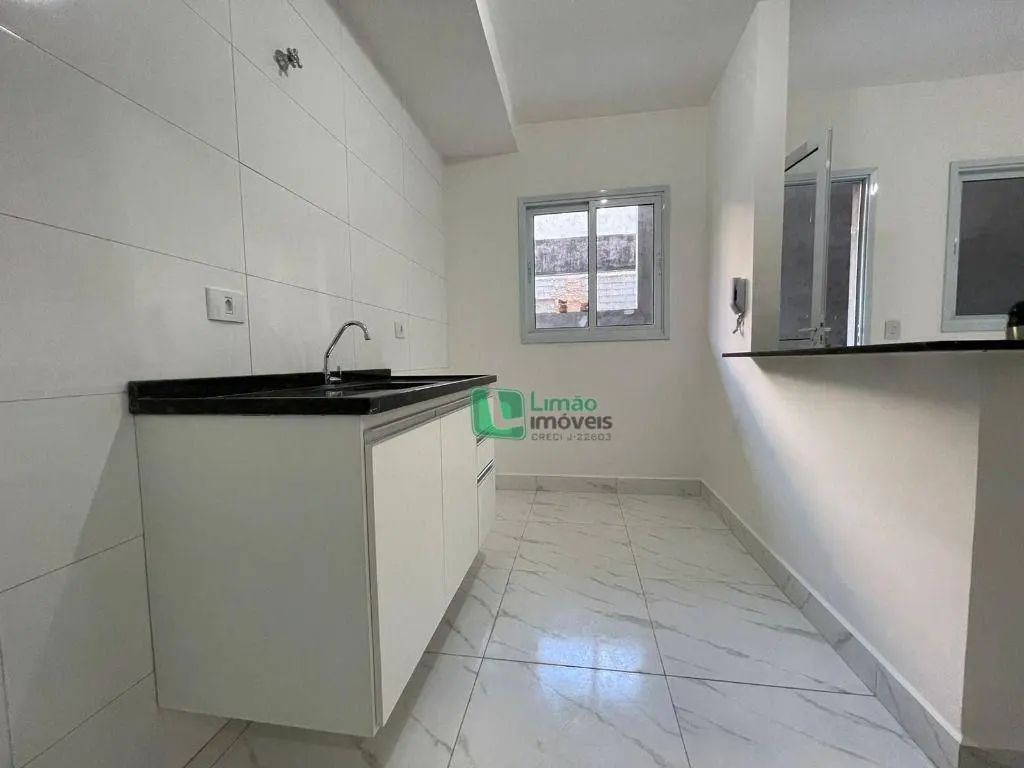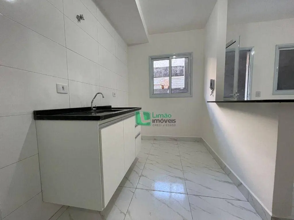 Apartamento de 39m2, com 1 dormitório grande, sala ampla para dois ambientes integrada com cozinha americana com armário(gabinete), 1 banheiro completo (box, chuveiro e armário) e área de serviços como varanda privativa.