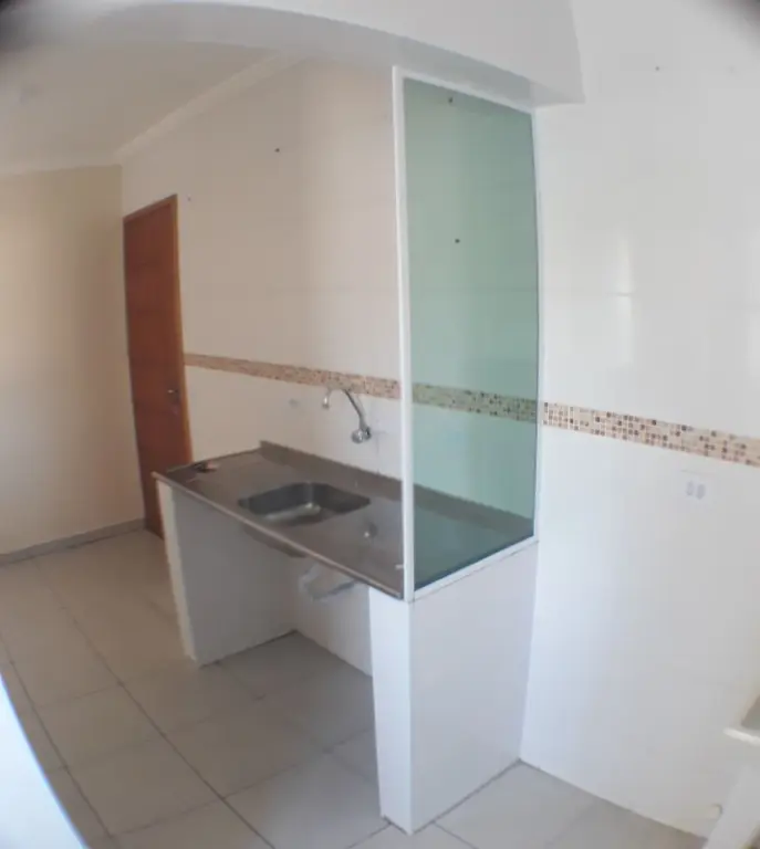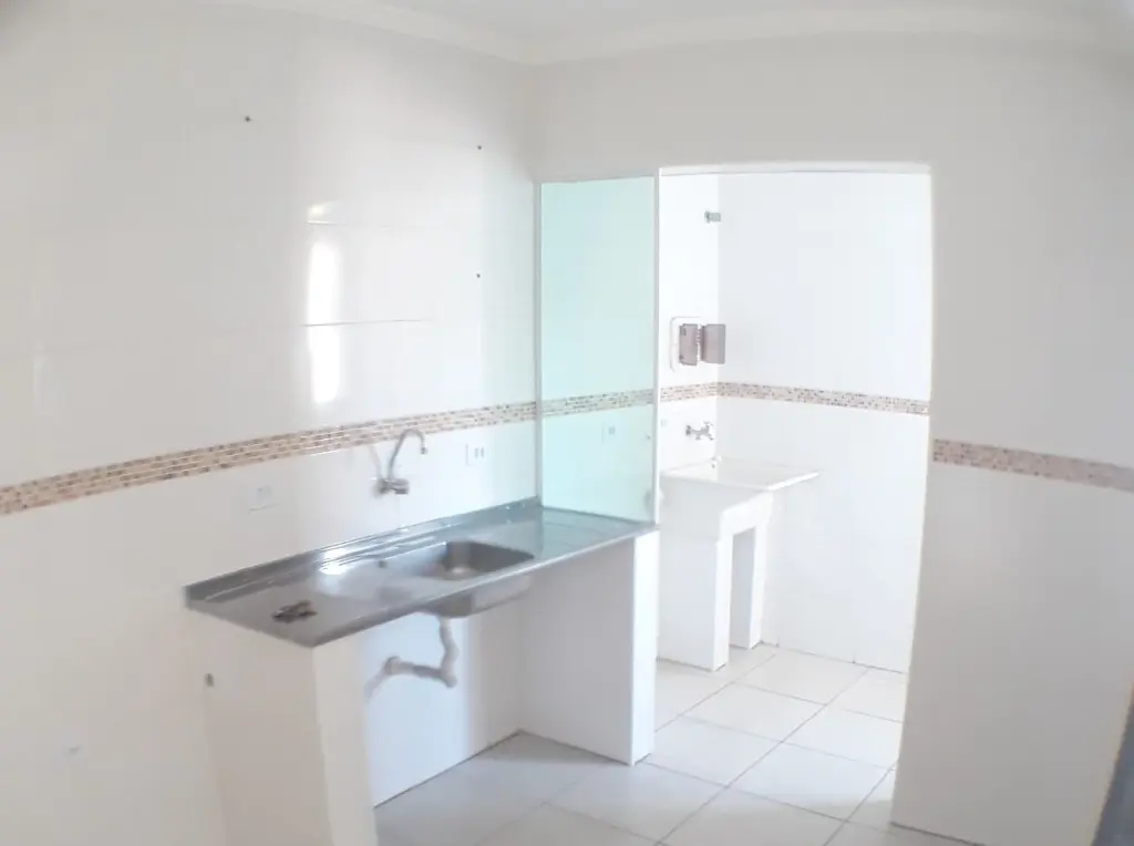 O imóvel no bairro Vila Amália (Zona Norte) com 52 metros quadrados com 2 quartos e 1 banheiro. Está em um condomínio protegido por grades.