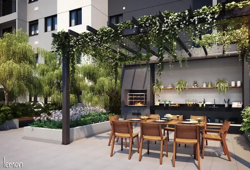 Condomínio com estrutura de lazer completa, piscina, salão de festas, quadra, playground, churrasqueira, espaço pet, horta, bicicletário, coworking, academia.