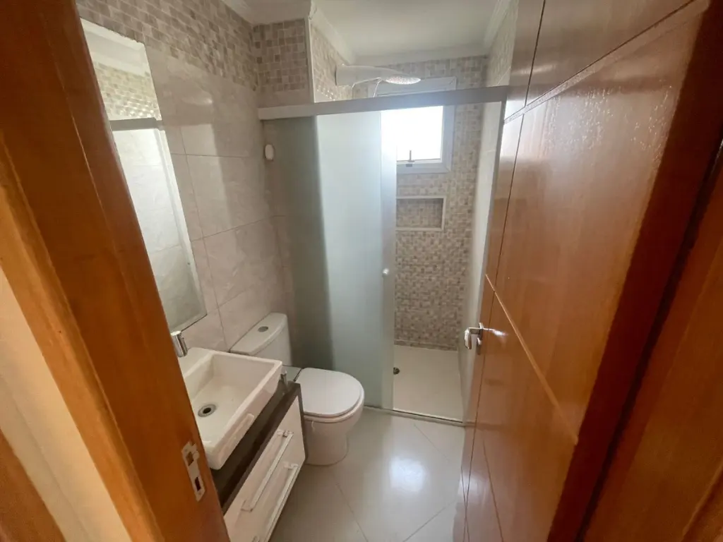 Excelente apartamento com 2 dormitórios com armários planejados, sala para 2 ambientes, cozinha planejada, banheiro social com box e gabinete, além de área de serviço com armário e 1 vaga de garagem.