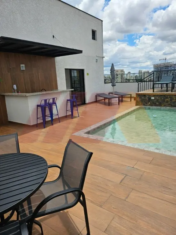 Lazer com piscina no rooftop, área gourmet, coworking, salão de festas, lavanderia, coletiva, academia e mercadinho.