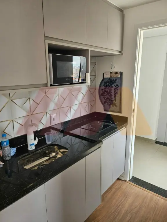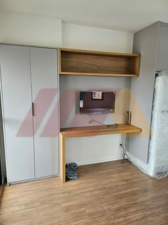 O Studio todo mobiliado com cama, eletrodomésticos novos, nunca foi usado.