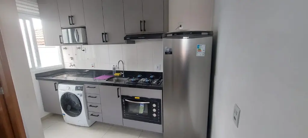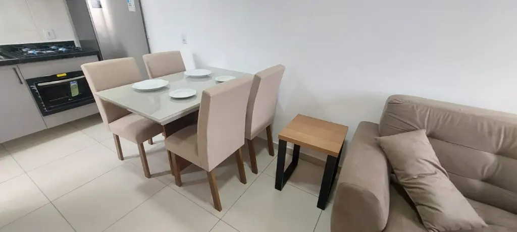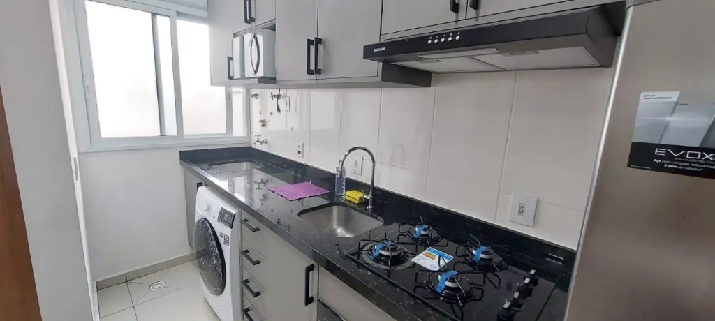 Inclui: Sofá, mesa de jantar, cama box com baú, guarda roupa com espelho, ventilador de teto com controle sem fio, geladeira, cooktop, forno, micro ondas, lava e seca, exaustor, armários planejados na cozinha e WC, fechadura digital.
