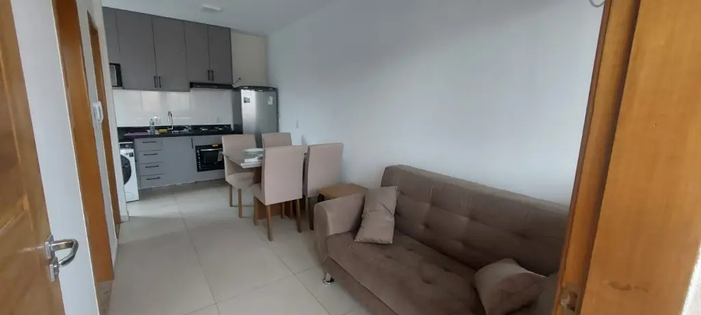 Apartamento com 27m², 01 dormitório, sala, cozinha e lavanderia integrados, banheiro, sem vaga.