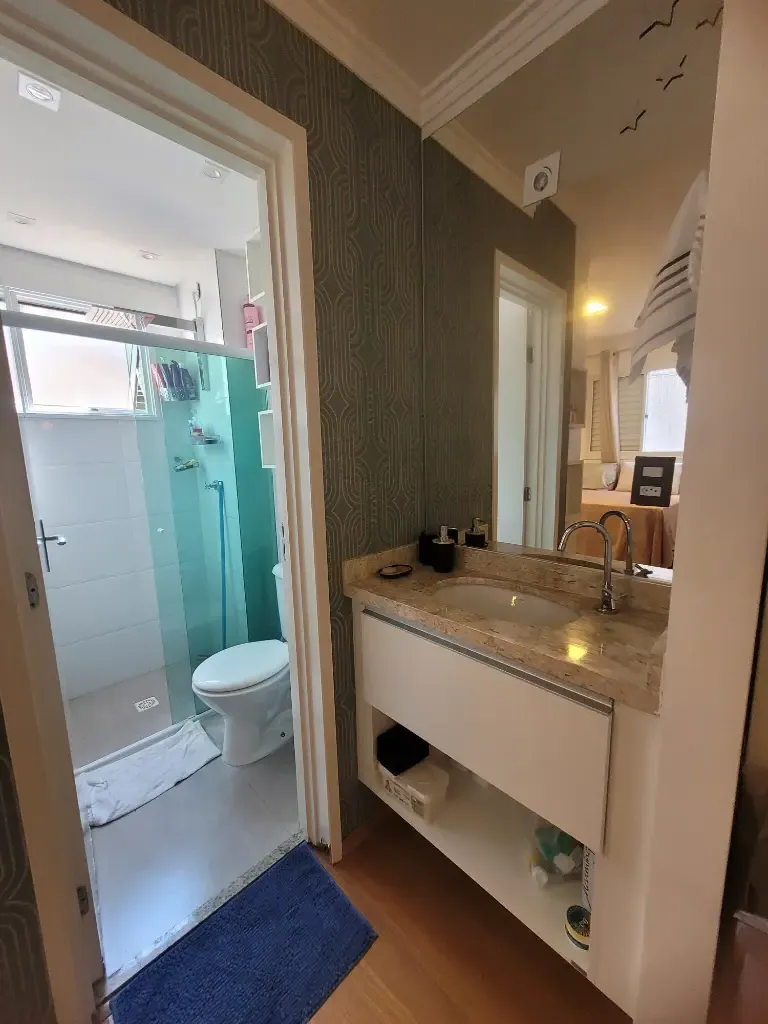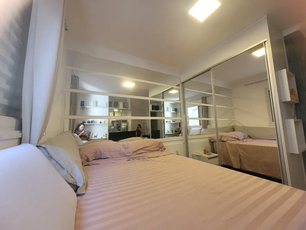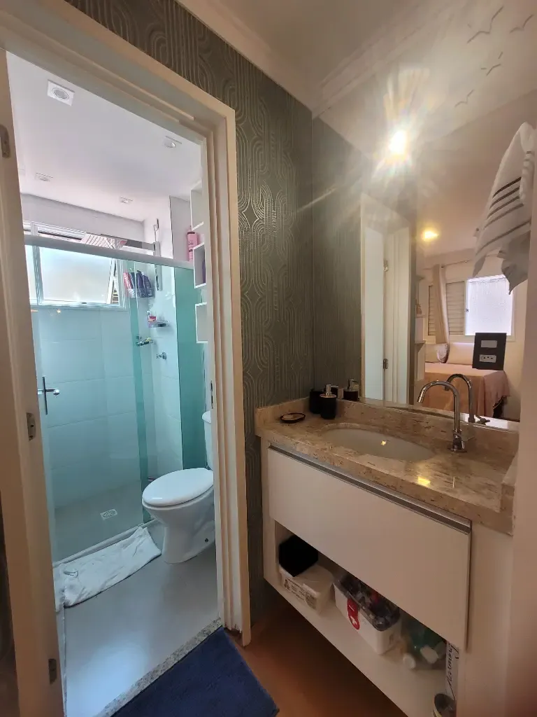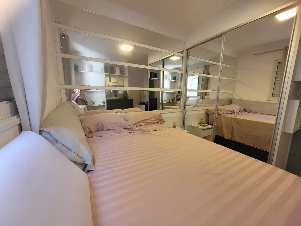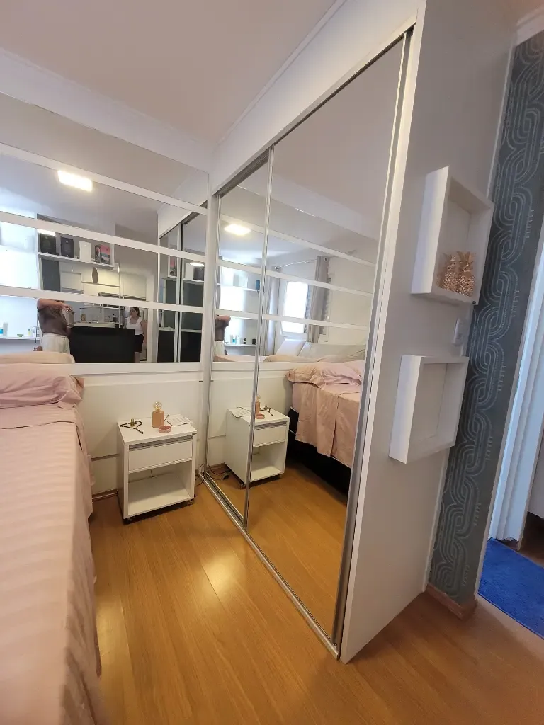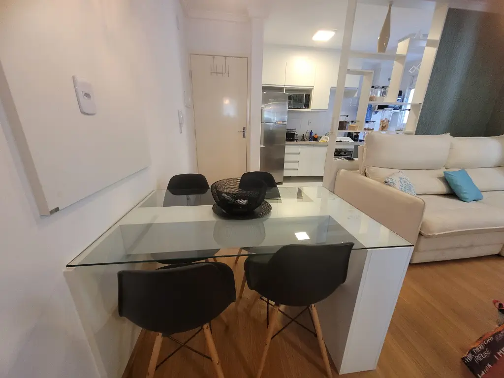 Apartamento lindo, bem decorado, com 35 m2 de área útil, sendo 1 quarto com armário planejado, sala com rack, mesa com 4 acdeiras, cozinha planejada com cooktop, forno, geladeira, armários, área de serviço, banheiro com chuveriro e box de vidro, espelho, papel de parede, cortinas. Condominio seguro, cameras de segurança em todo os condominio.