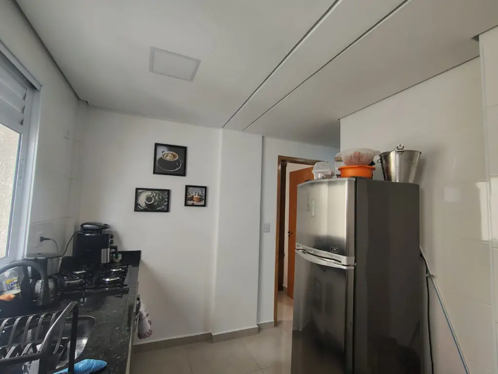 Cozinha equipada com móveis planejados cooktop, geladeira e forno