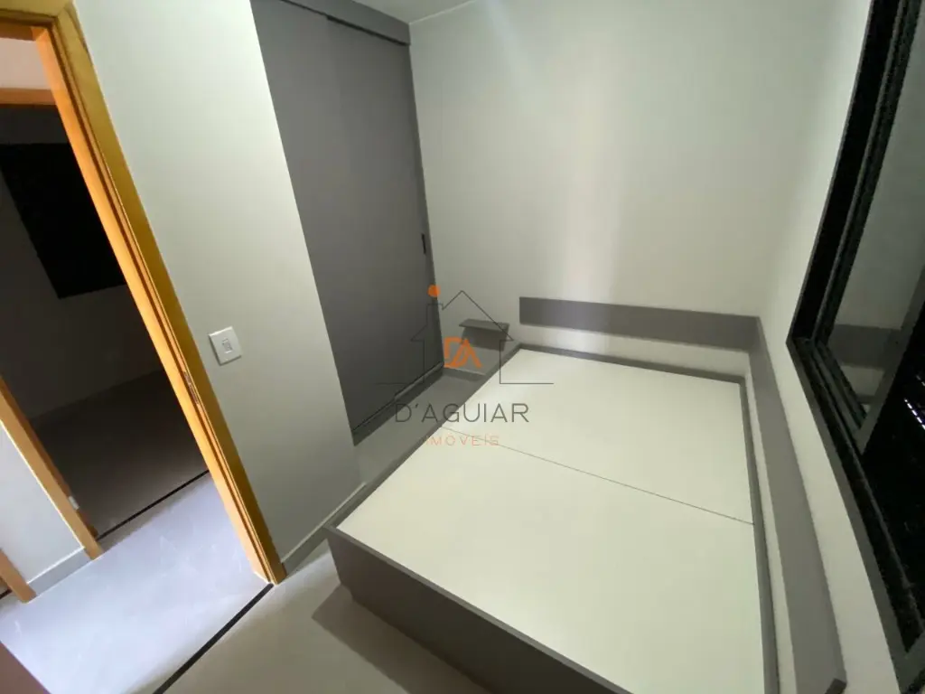 Apartamento em porcelanato claro com sala de estar conjugada com cozinha tendo armários planejados, lavanderia com tanquinho, banheiro com gabinete planejado, vaga de garagem e box blindex e dois dormitórios sendo um com móveis planejados.