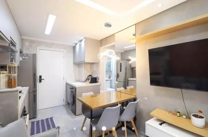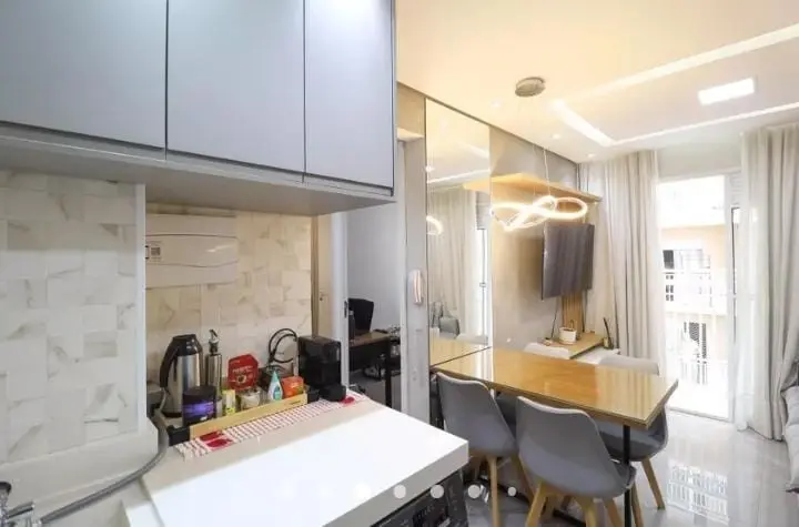 Ideal para famílias pequenas ou casais. Cozinha com cooktop. Conta com armários planejados na cozinha e nos 02 dormitórios, 1 banheiro com box, sala. O condomínio possui academia, salão de festas, brinquedoteca e playground.