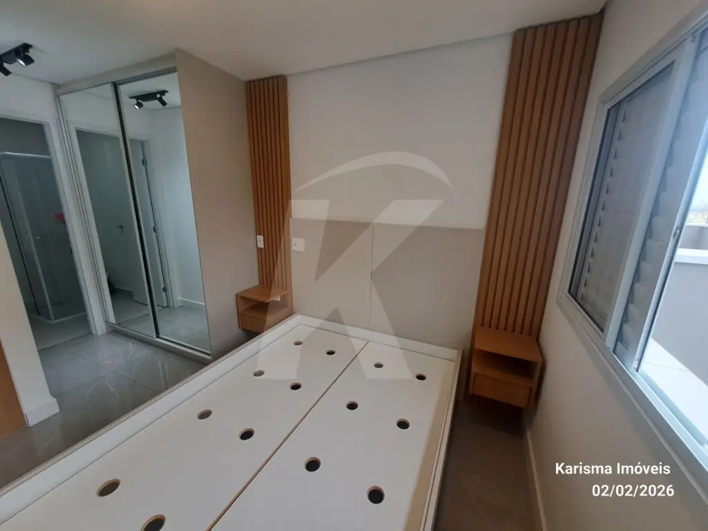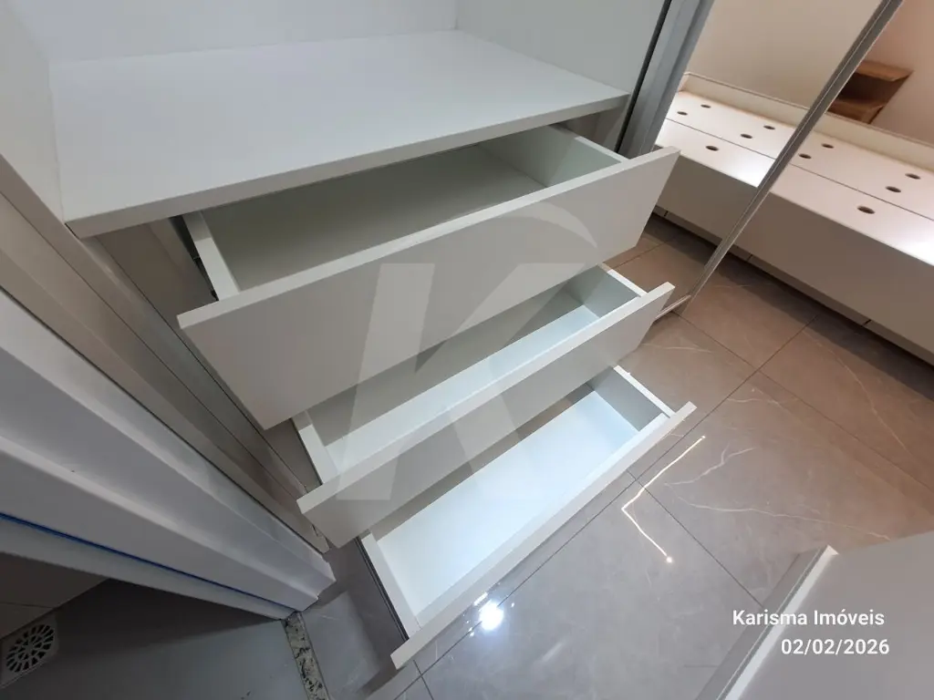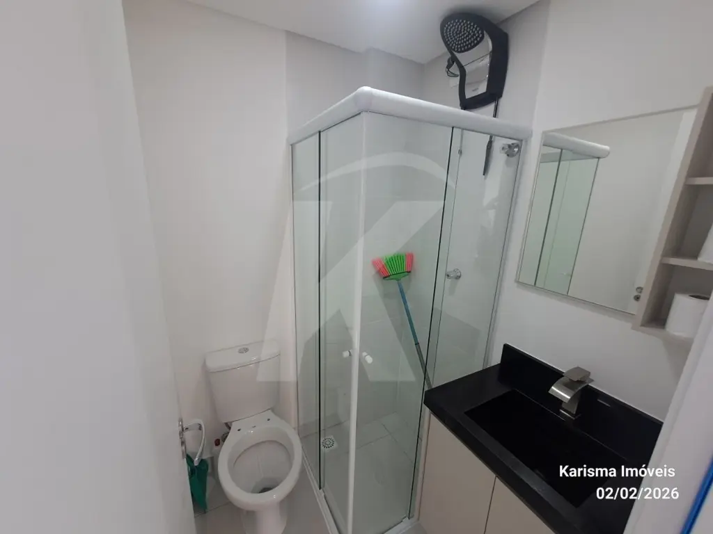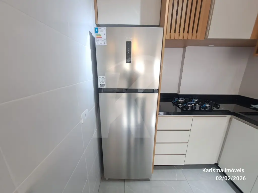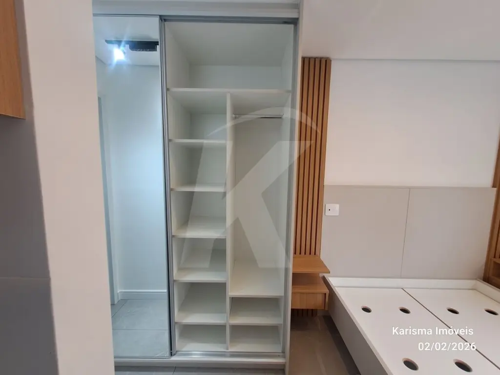 Mobílias: geladeira, máquina de lava e seca (11 kg), forno micro - ondas, cooktop, torneira de água quente, cama suspensa com 3 gavetas, painel giratório, nicho, guarda roupa com 2 portas e espelho.