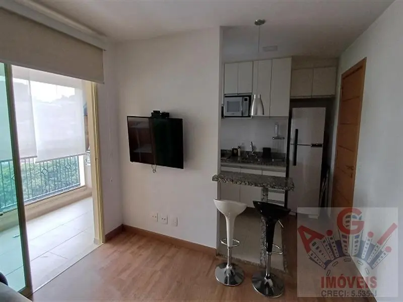 Locação: Lindo apartamento todo mobiliado com 01 dormitório com piso laminado, com armário embutido, cama-box casal e ar-condicionado, sala com piso laminado, sofá, TV, mesinha de trabalho e ar-condicionado, cozinha americana com piso frio, armários planejados, 02 banquetas, geladeira, micro-ondas, cooktop, coifa, liquidificador, cafeteira e air fryer, banheiro com box blindex, ducha e armário com fechadura eletrônica, lavabo com gabinete e espelho, varanda gourmet envidraçada com churrasqueira home gril e ar-condicionado e 01 vaga de garagem. O condomínio oferece lazer completo, portaria 24 hs, piscina raia semi-olimpica com parte coberta, academia, sauna, ofurô, salão de festas, salão de jogos, sala de convenção, home cinema. Agendar visitas com nossos corretores.