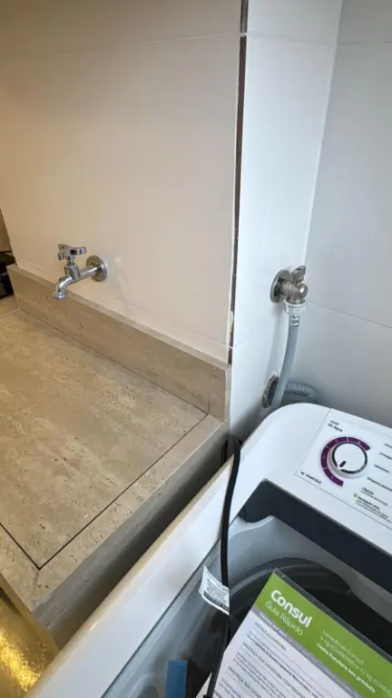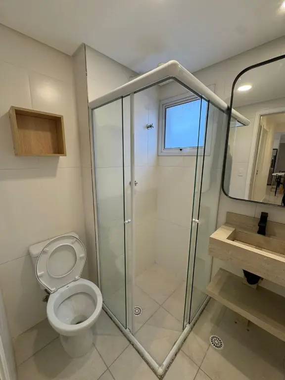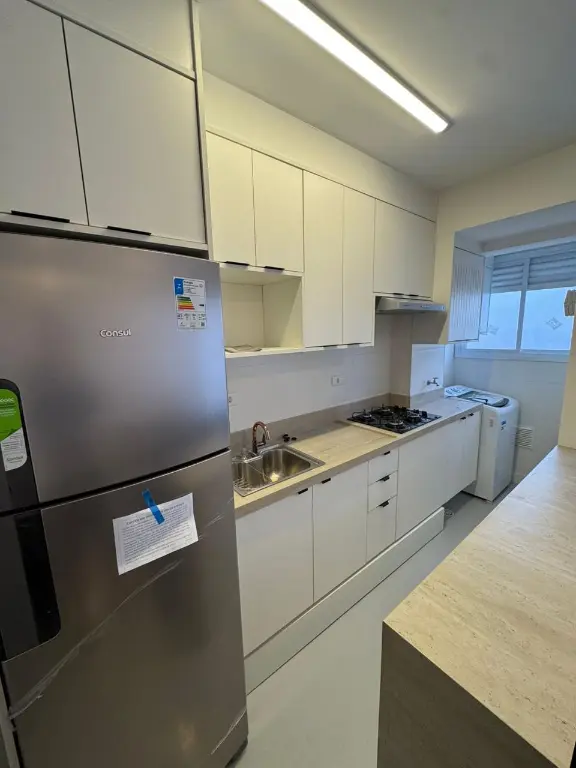 A cozinha planejada está equipada com cooktop, depurador e geladeira, enquanto a lavanderia conta com máquina de lavar, otimizando o uso dos ambientes. O banheiro apresenta excelente acabamento, com box blindex e planejados. O apartamento dispõe ainda de 1 vaga de garagem, um diferencial importante para a região.