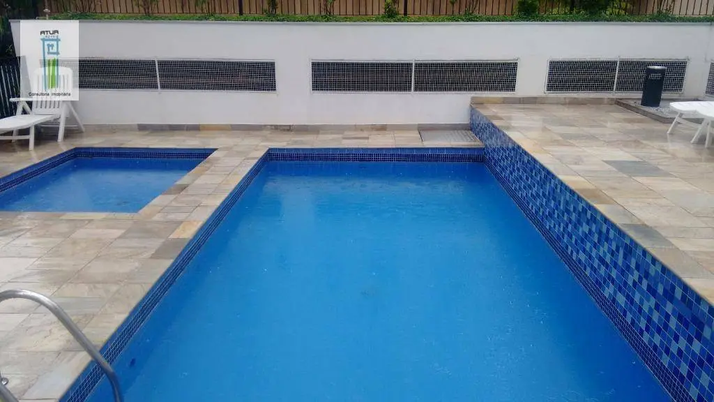 Condomínio com piscina adulto e infantil, salão de festas, sauna, bicicletário e gerador.