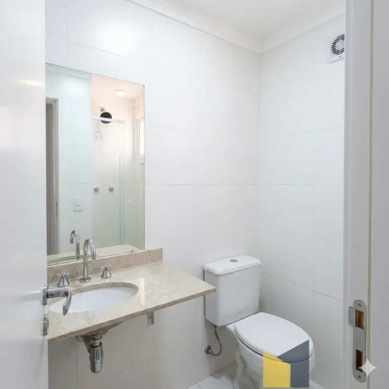 Apto com 2 suites, sala com sacada gourmet (piso carpete laminado) lavabo, cozinha americana planejada, lavanderia com aquecedor.