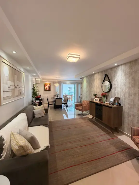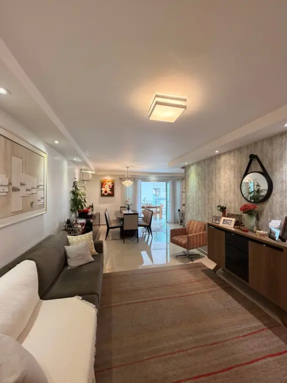 Amplo e sofisticado apartamento de 131m², com 3 suítes, sendo a master com hidromassagem e closet. Sala espaçosa para 3 ambientes, integrada à varanda gourmet envidraçada e com persianas, linda vista para copa das árvores. Cozinha planejada e totalmente equipada, área de serviço funcional. Possui ar-condicionado e armários em todas as suítes. O imóvel conta ainda com depósito no subsolo e 4 vagas fixas de garagem..