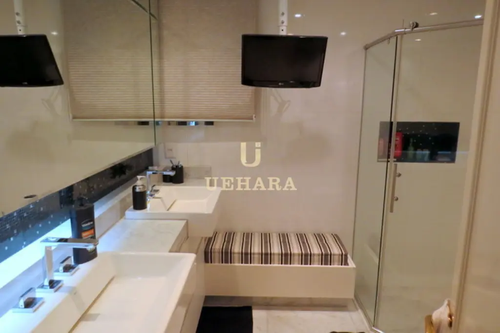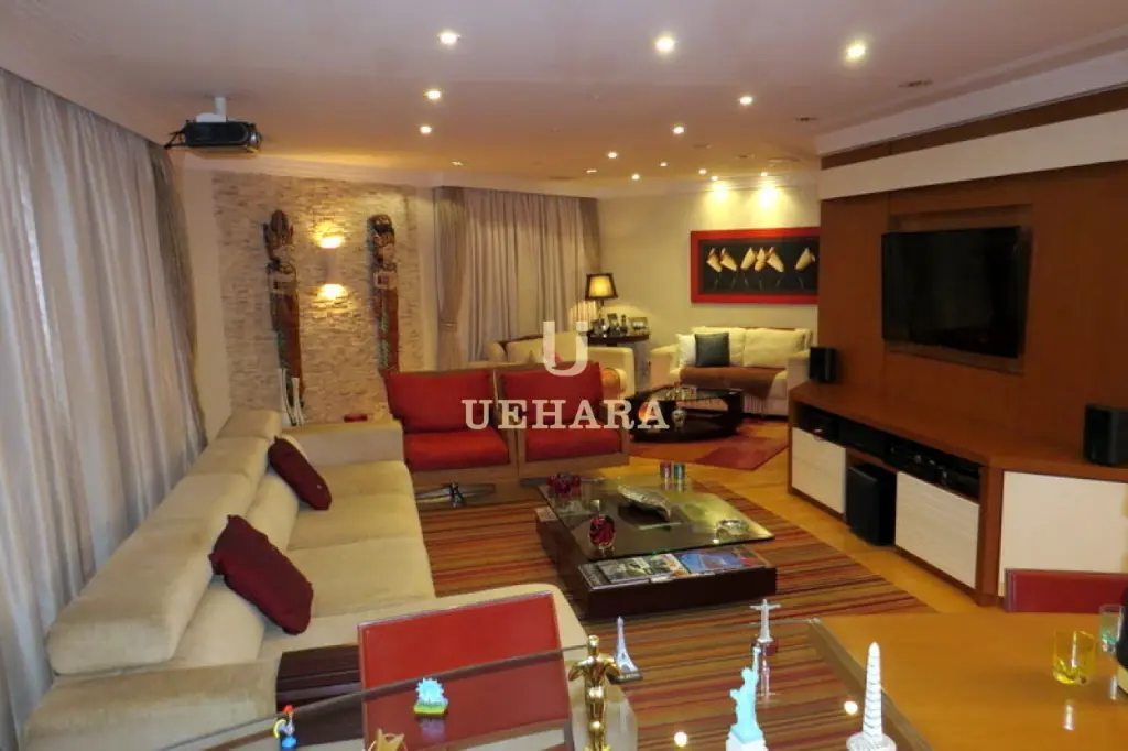 Apartamento alto padrão, 1 por andar com ótima localização; andar alto; todos os cômodos amplos, arejados e ensolarados; repleto de armários. Acomodações: 4 dormitórios sendo 3 suítes (1 master com closet), sala com home theater, sala de estar, sala de jantar, sala de TV, varanda, lavabo, cozinha, sala de almoço, despensa, escritório, área de serviço com WC, 4 vagas, depósito na garagem. Prédio com salão de festas, salão com churrasqueira, quadra poliesportiva coberta, piscina adulto e infantil aquecidas, sala de ginástica, salão de jogos, sauna, gerador.