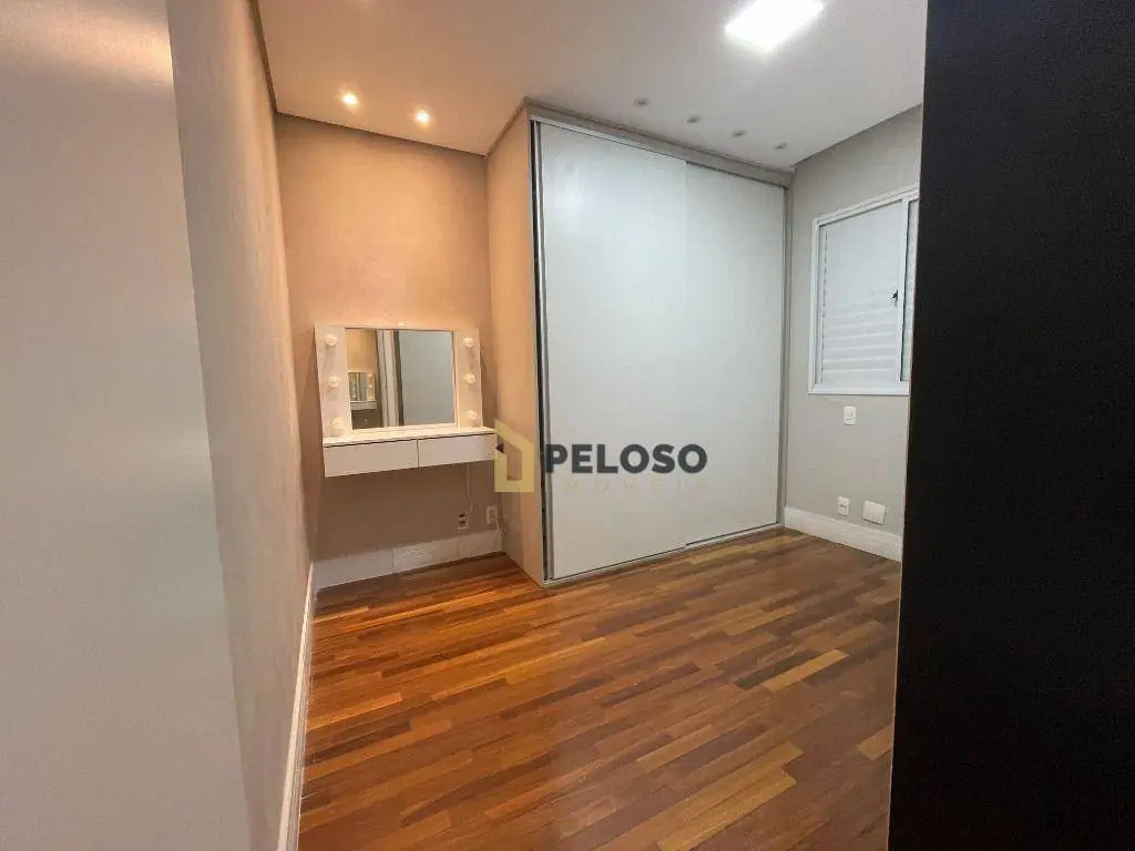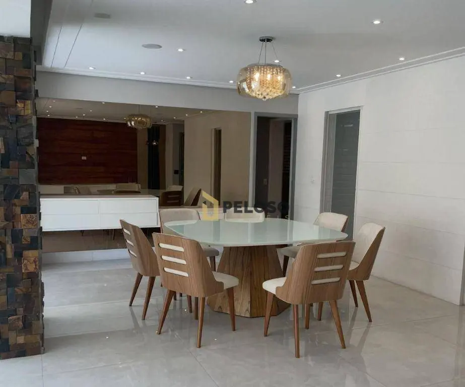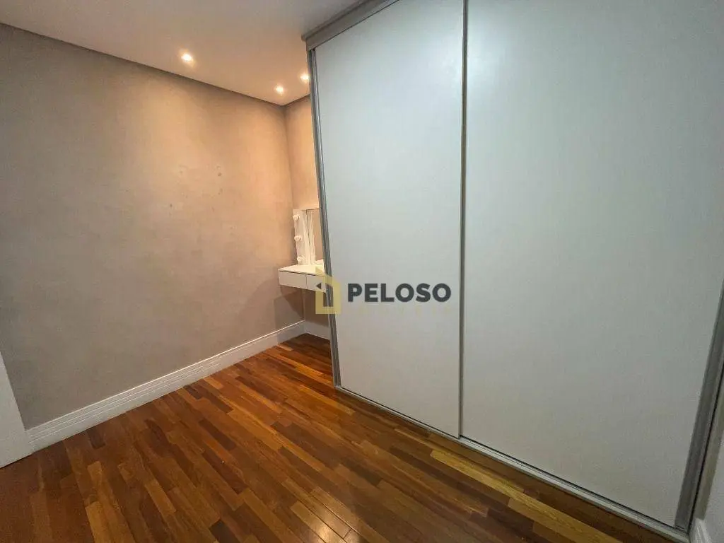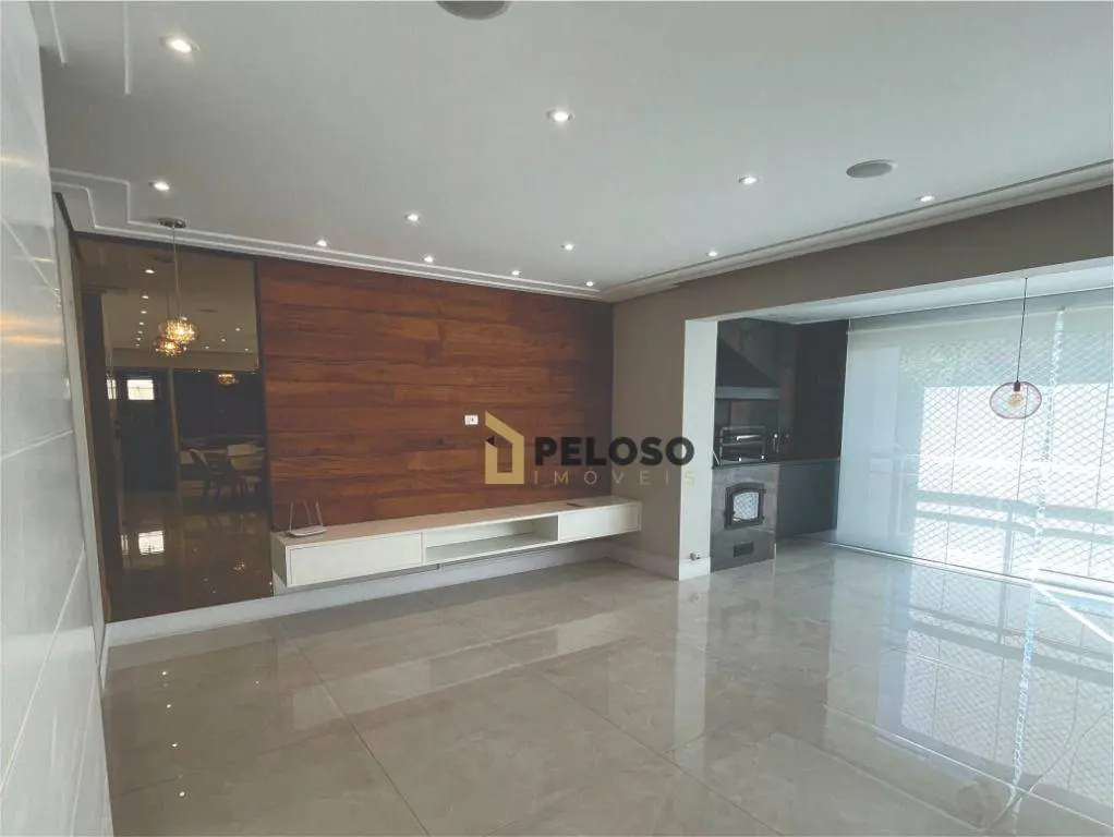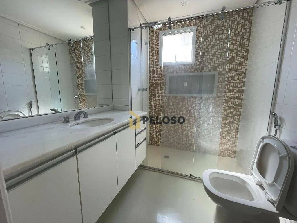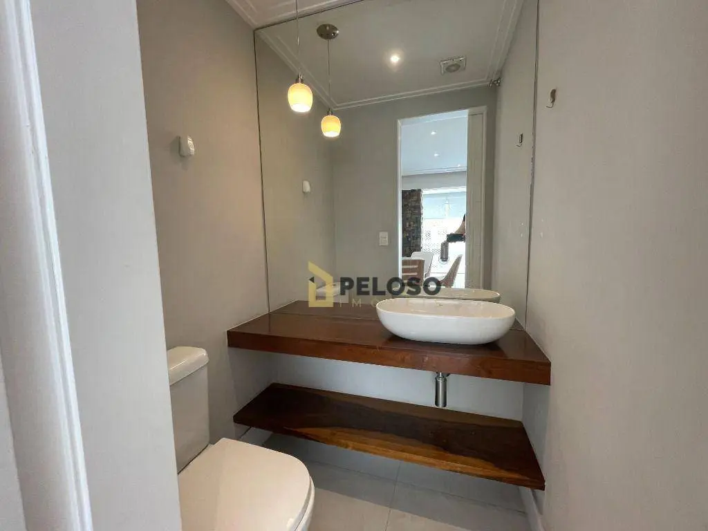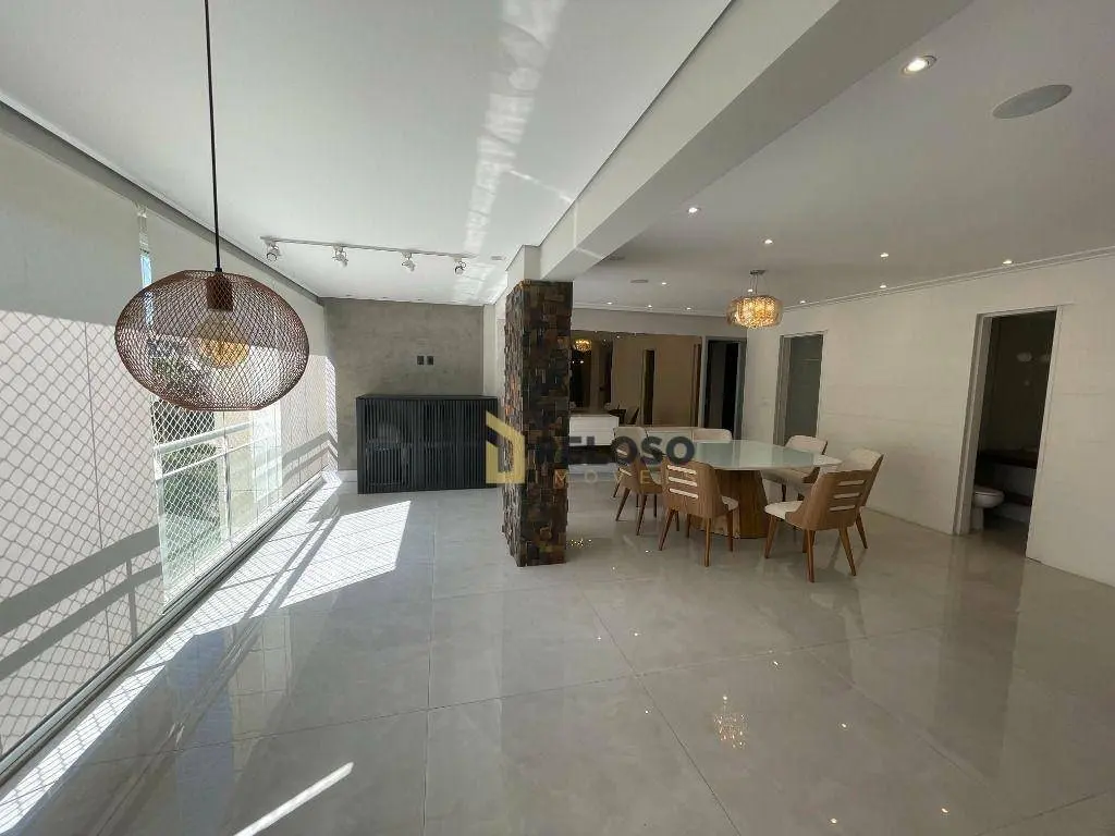 3 suítes com armários, sala ampla para 3 ambientes, lavabo, varanda gourmet integrada com fechamento em vidro, cozinha equipada com forno, cooktop e armários, área de serviço com armários, despensa.
