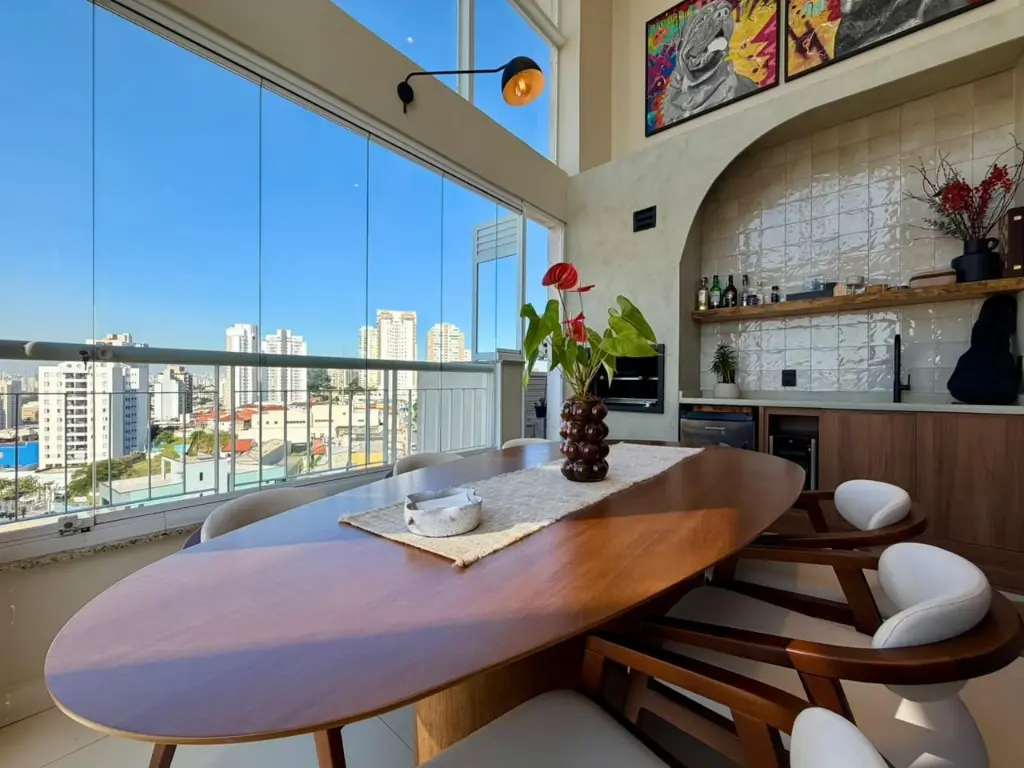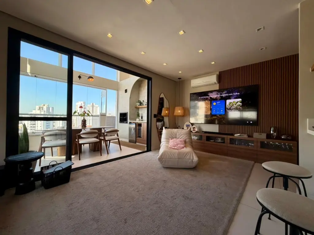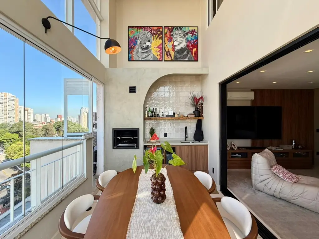 A área externa conta com espaço gourmet com churrasqueira a carvão e jardim exclusivo, criando um ambiente ideal para receber amigos e aproveitar momentos de lazer.