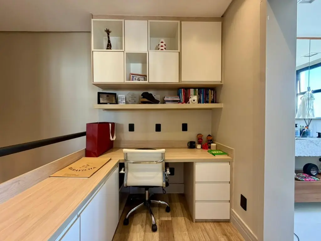 Entre os diferenciais do imóvel estão prateleiras em madeira maciça, que trazem aconchego ao ambiente, além de estar recém-reformado e equipado com ar-condicionado.
